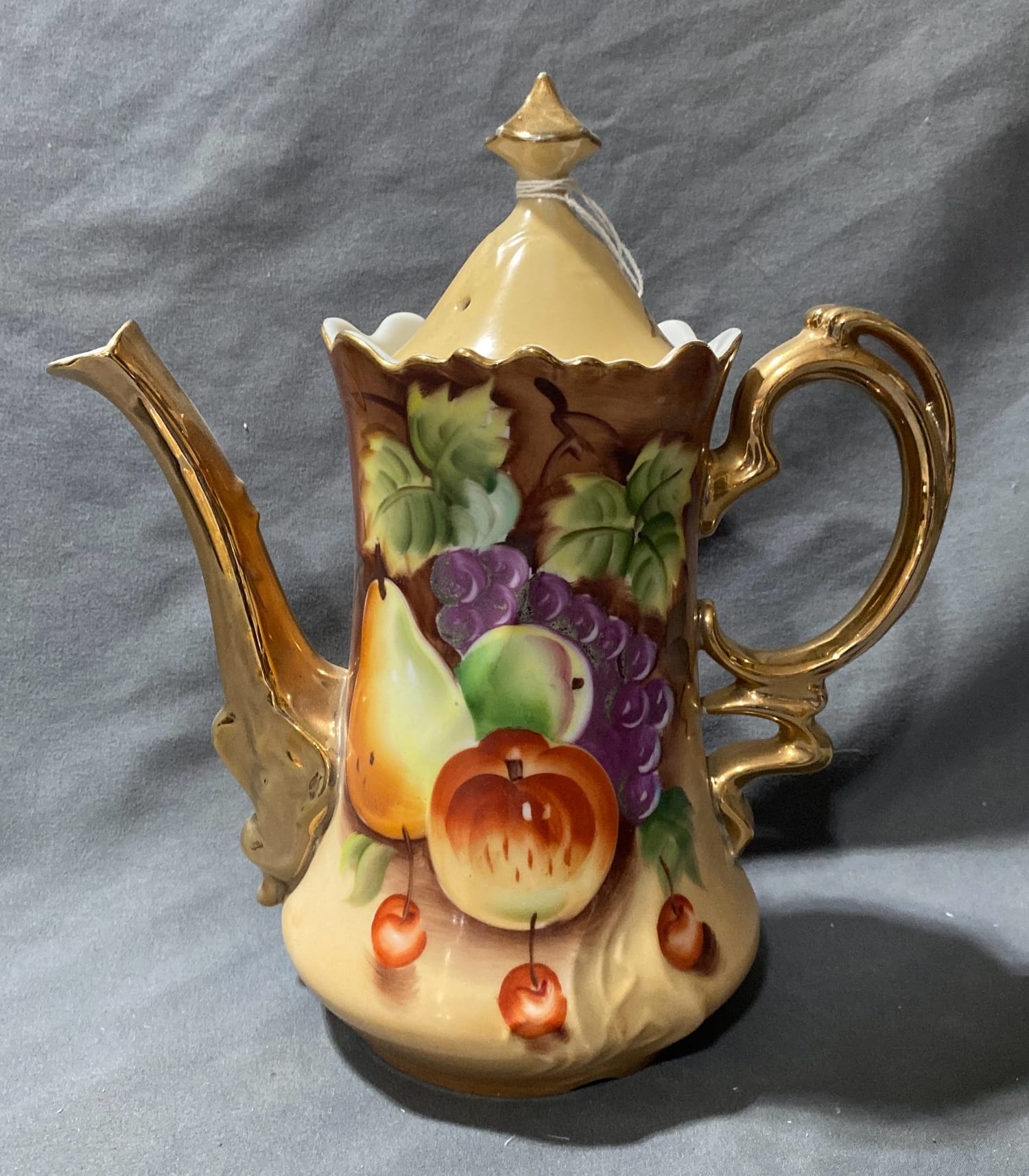 3049 Lefton China Heritage Fruit Coffee Pot 9”