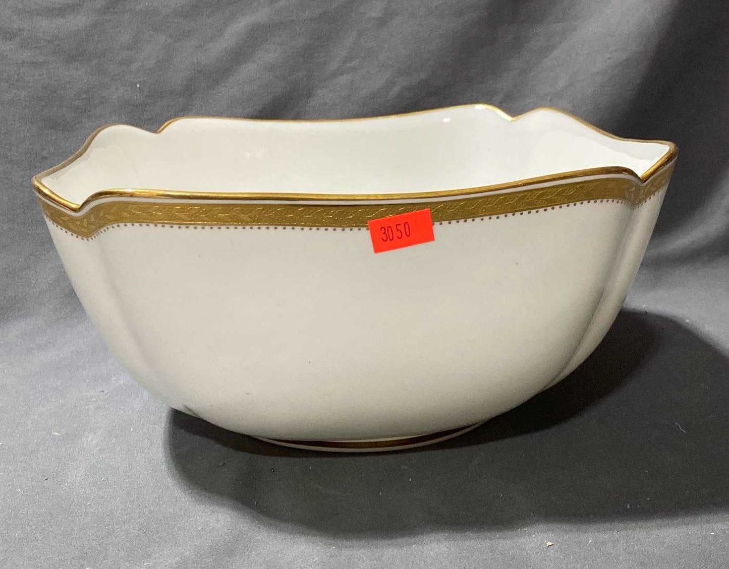 3050 Mintons 9” Square Salad/Fruit Bowl with Gold tone edging