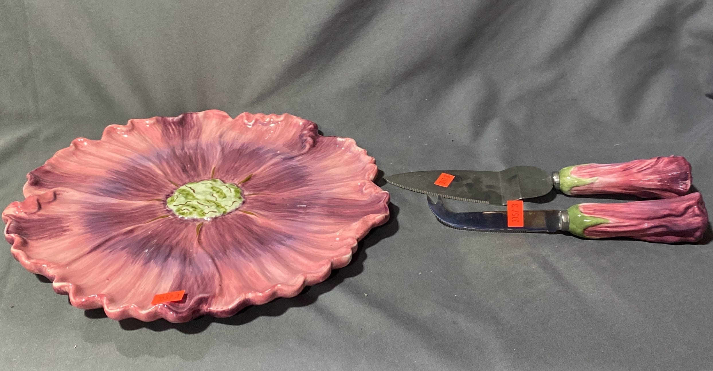 3057 Anemone Ambiance Cake Plate with Cake Knife & Server 11.5”