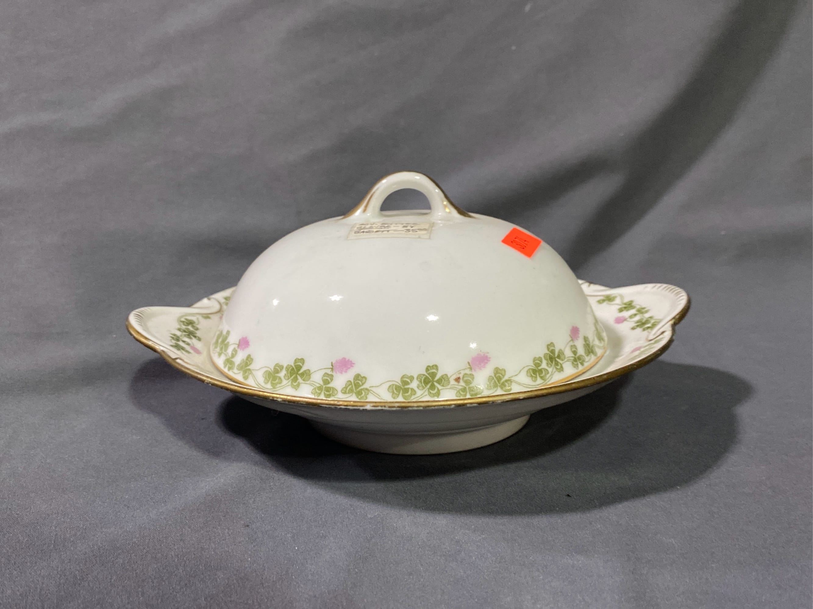 3014 Moss Rose Haviland 1880s Porcelain Round Covered Vegetable Bowl 7.25”x6”