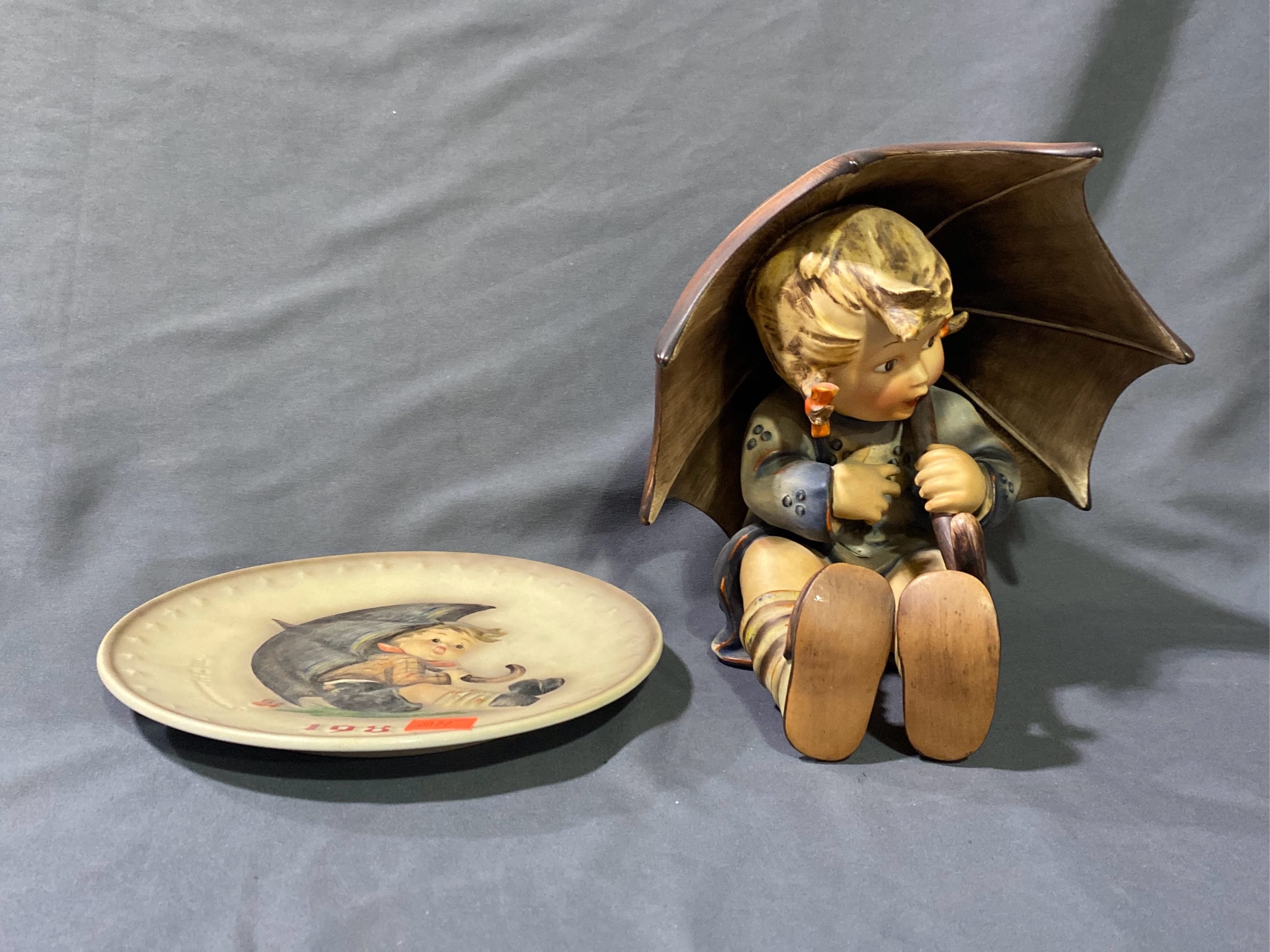 3077 M. J. Hummel 152 B Umbrella Girl Figurine 8" Tall 1951, M. J. Hummel 11th annual plate 1981