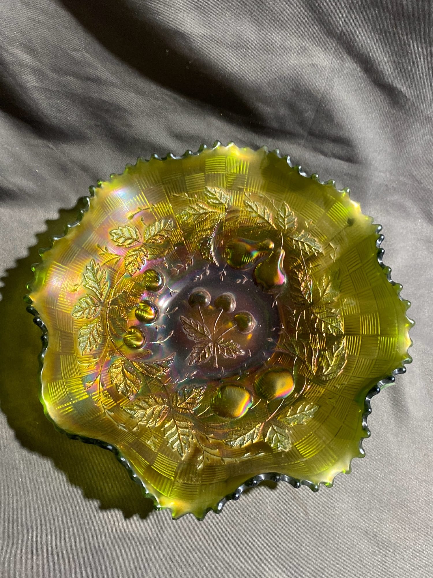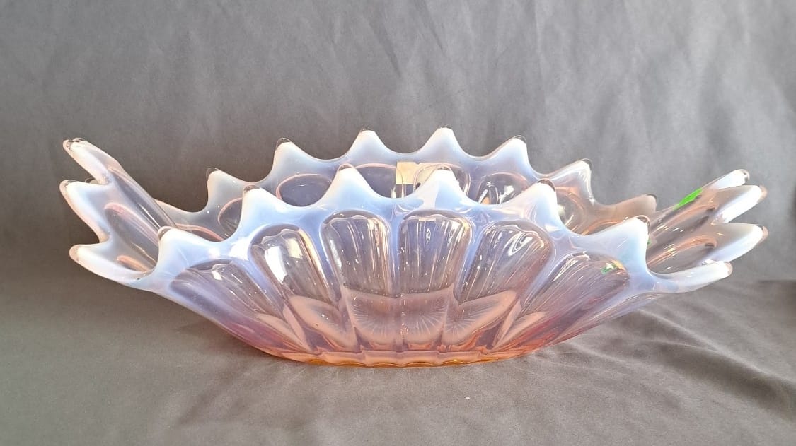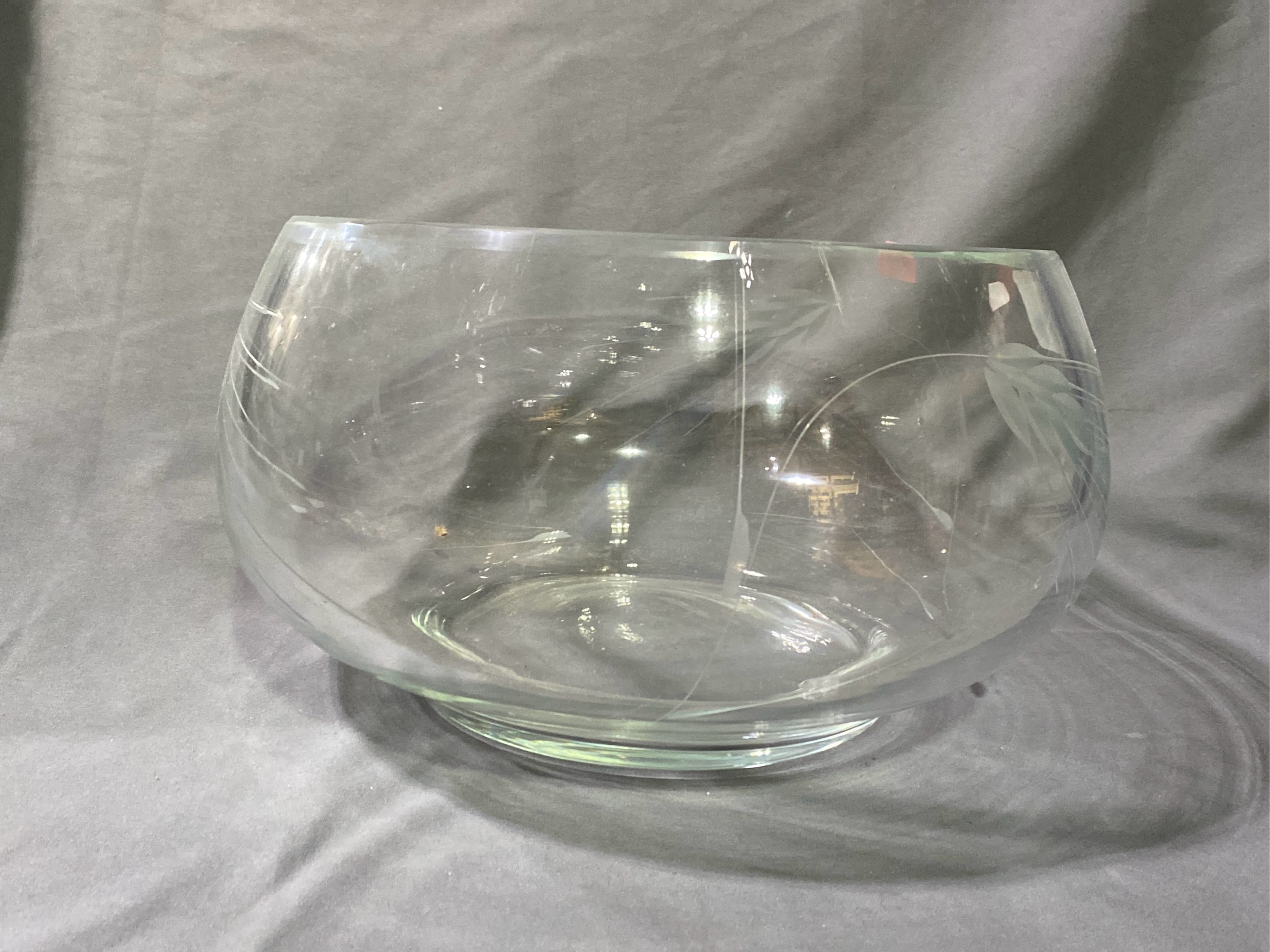 3080 Sasaki crystal wheat pattern punch bowl 7”x 11” ( chipped)