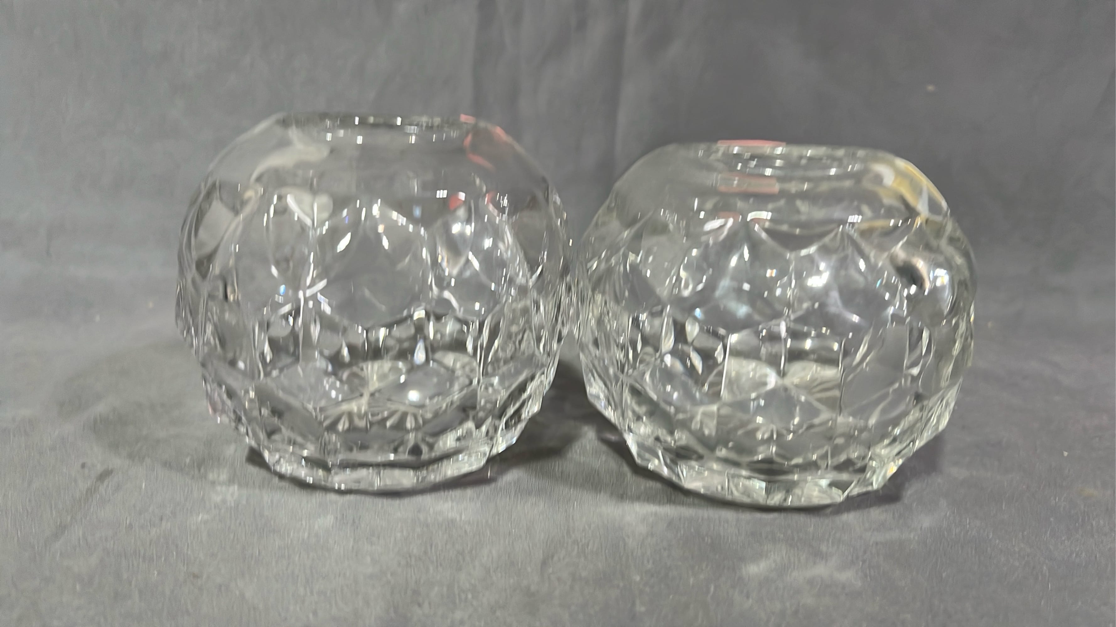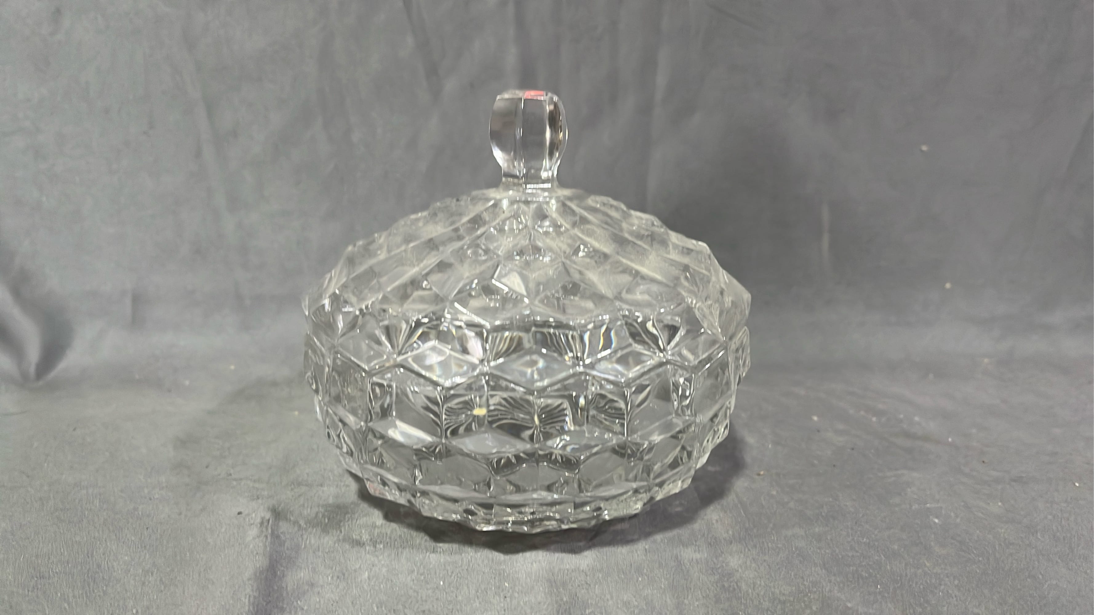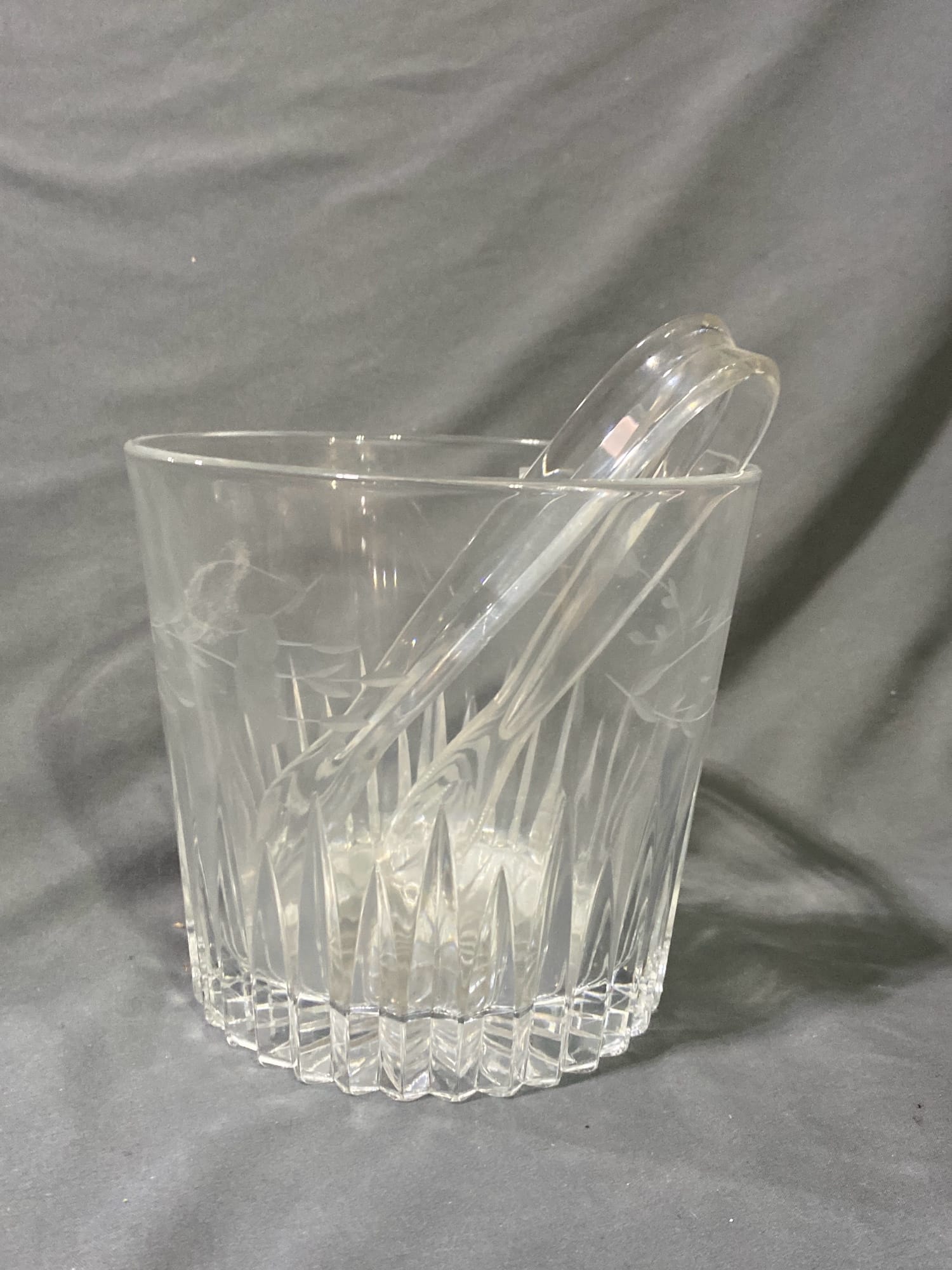 3081 Crystal glass ice bucket cut design 5.5”x 6”