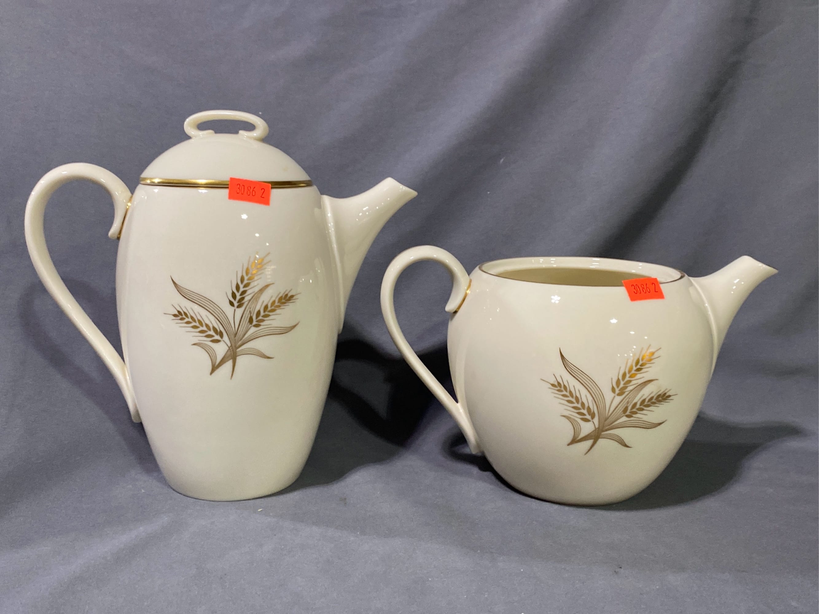 3086 Lenox harvest wheat pitcher 8”, teapot 5”