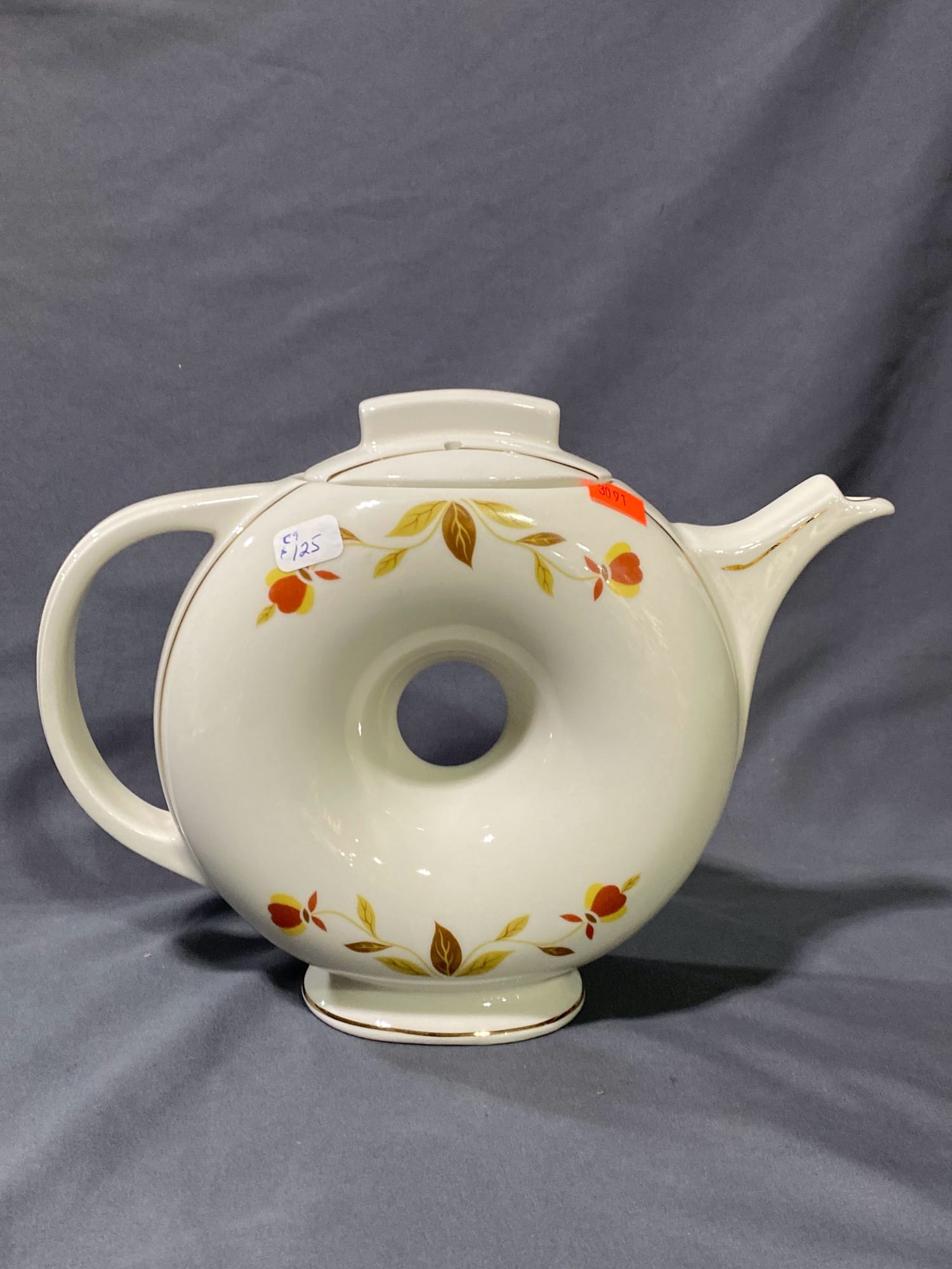 3091 Hall autumn leaf club doughnut teapot 8”x 10”