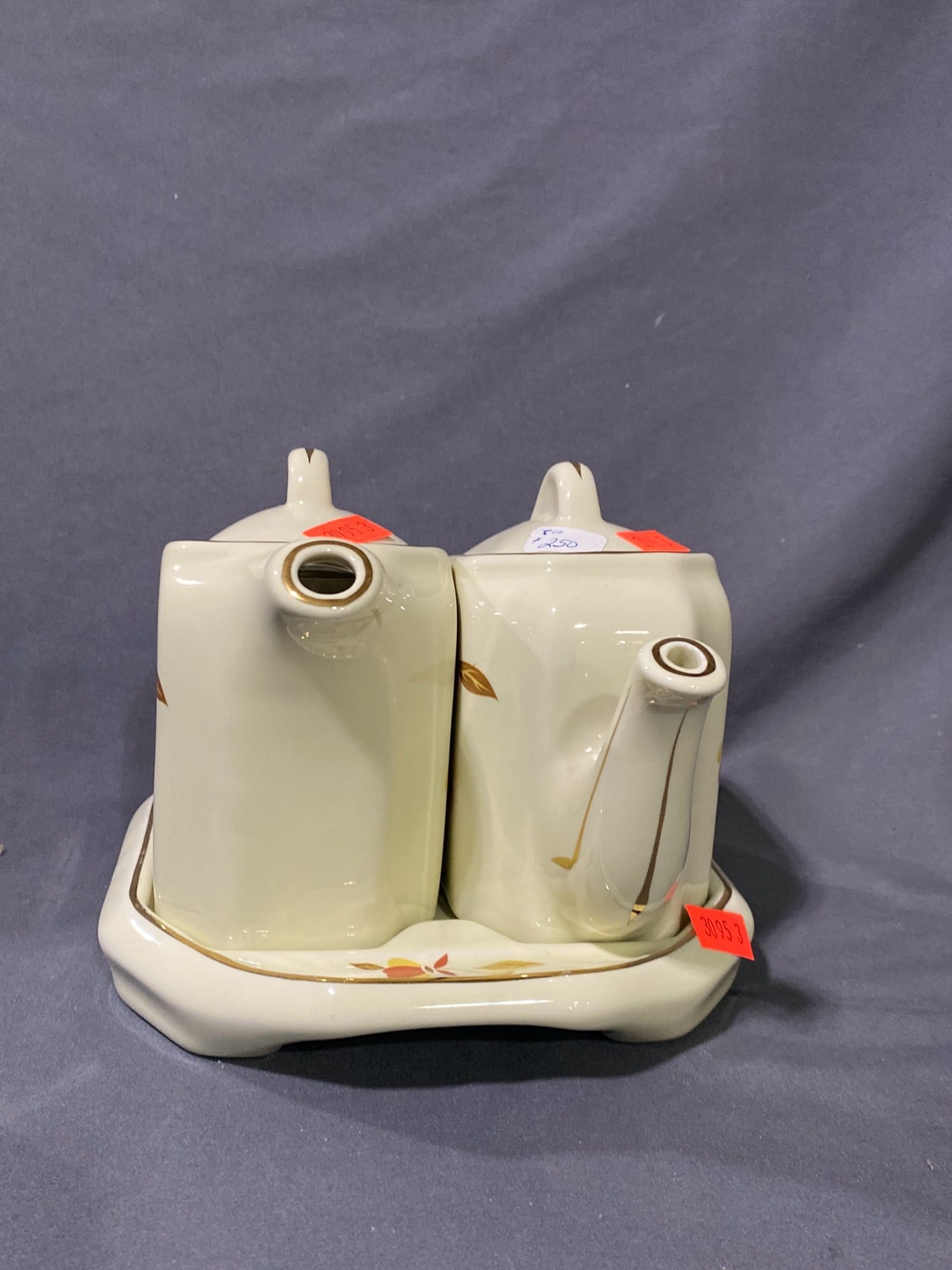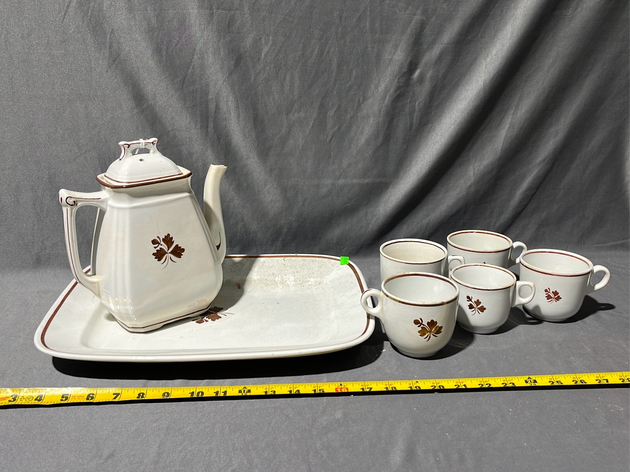 3095 Hall Autumn leaf 1990 tea for two set & tray 5”, 6”
