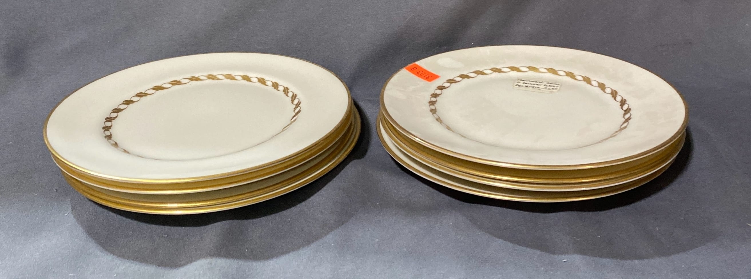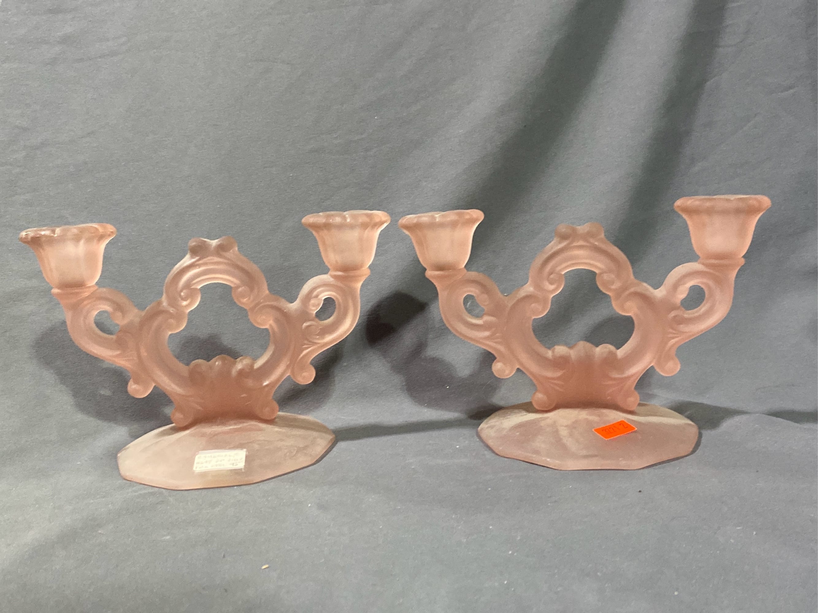 3052 Five - Candle Light Limoges Federal Coral Pink LC Warranted 22K Gold Plates 10.25” & Platter 13.75”