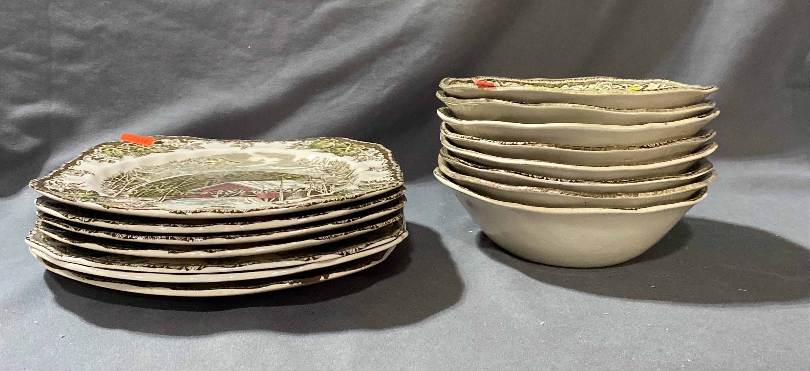 3735 2 Currier & Ives bowls 10" - "The Sleigh Race" & "Preparing for Market"