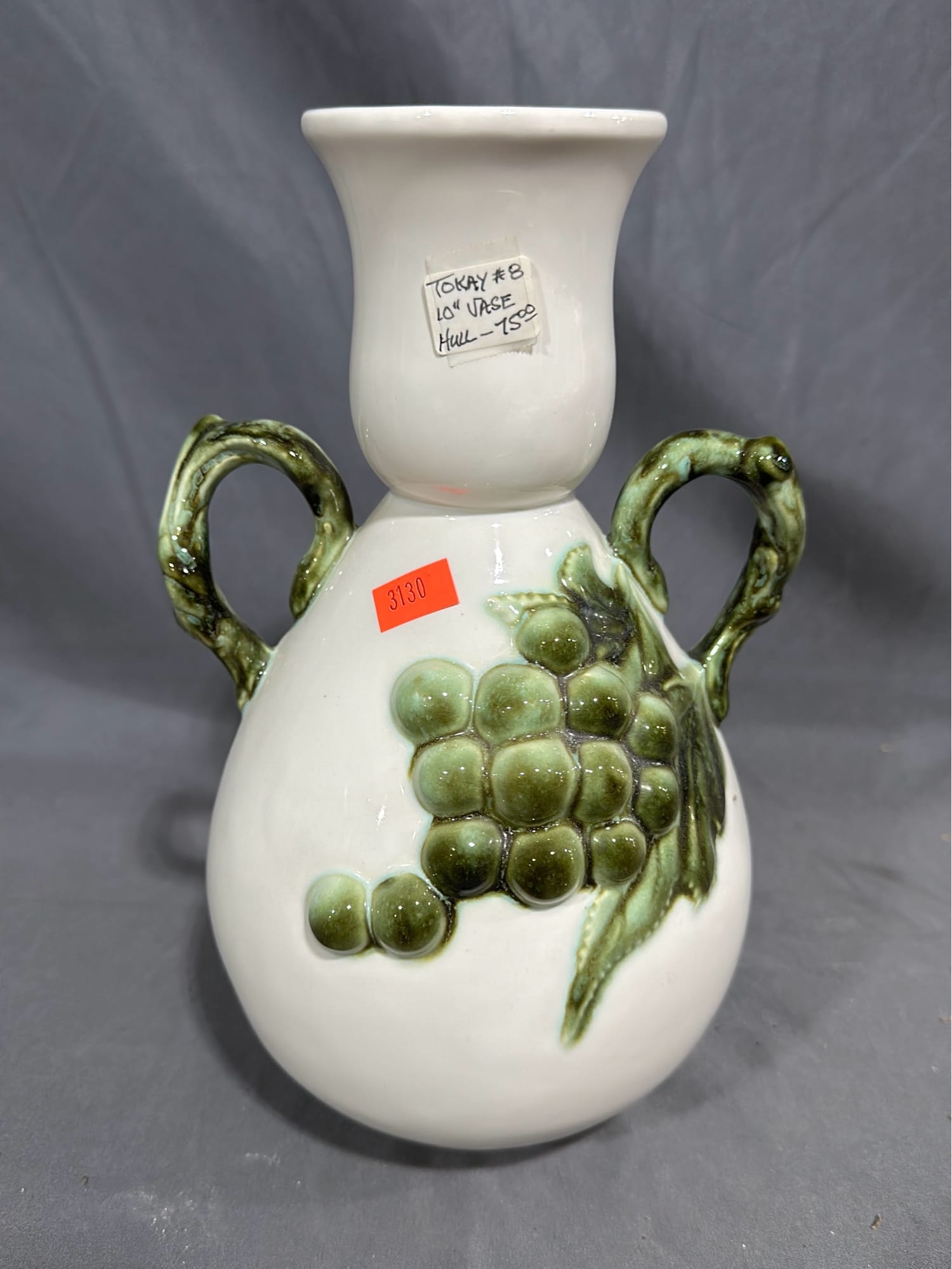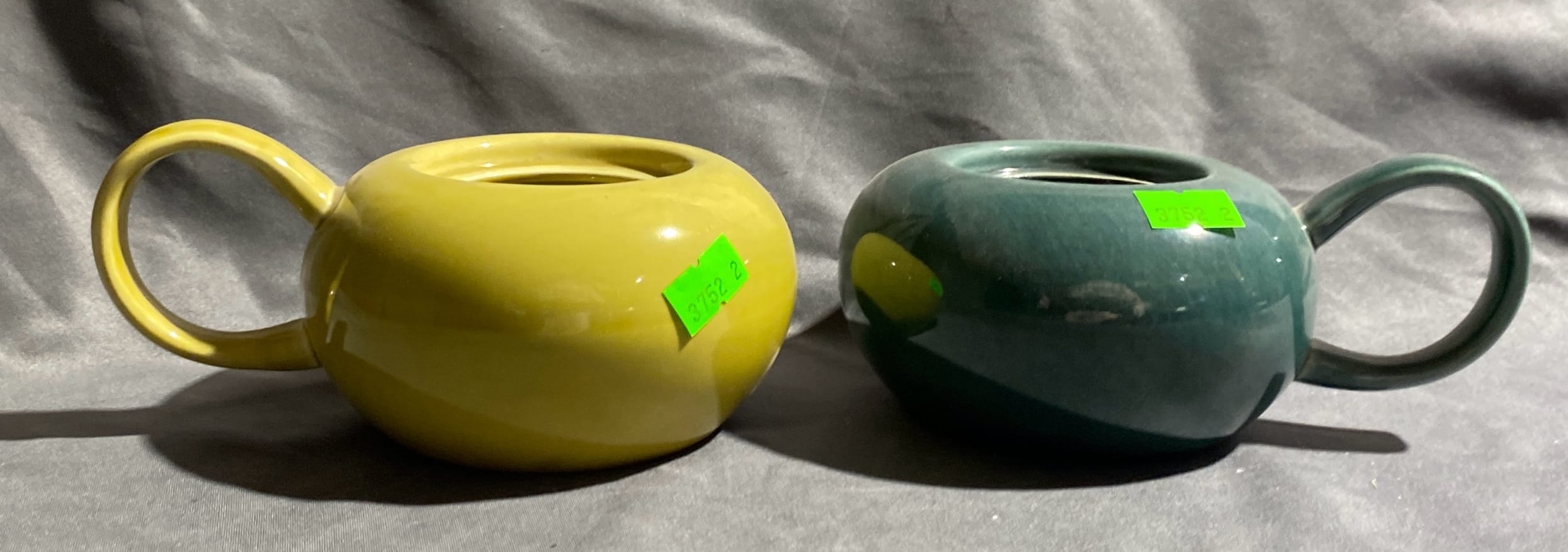 3089 Autumn leaf double egg cup 4”, bud vases 3.5”, 6”
