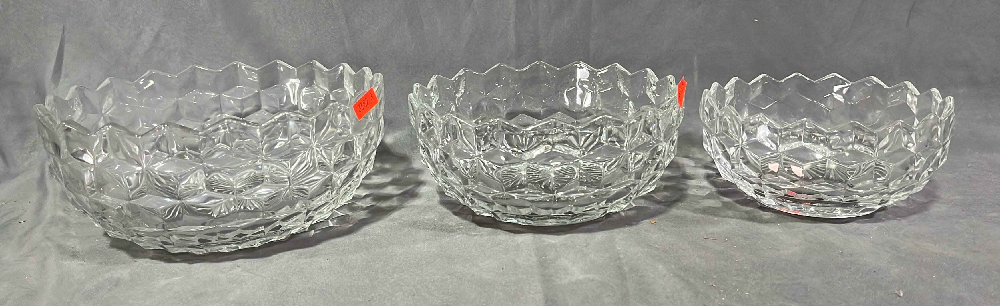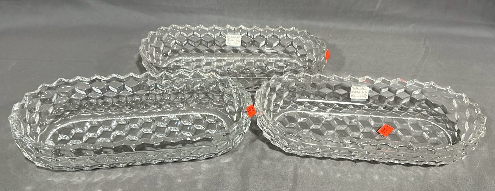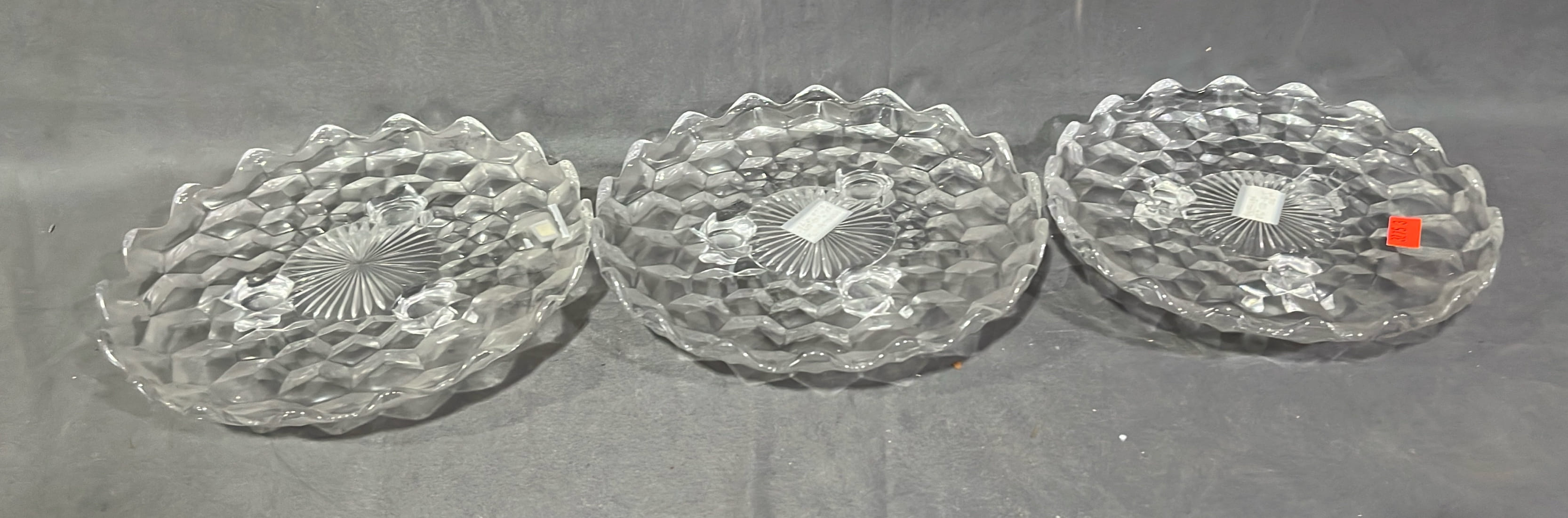 3001 Three - Fostoria American Footed Bon Bon & Tid Bit Plates 6.75”, 7”, 7.5”