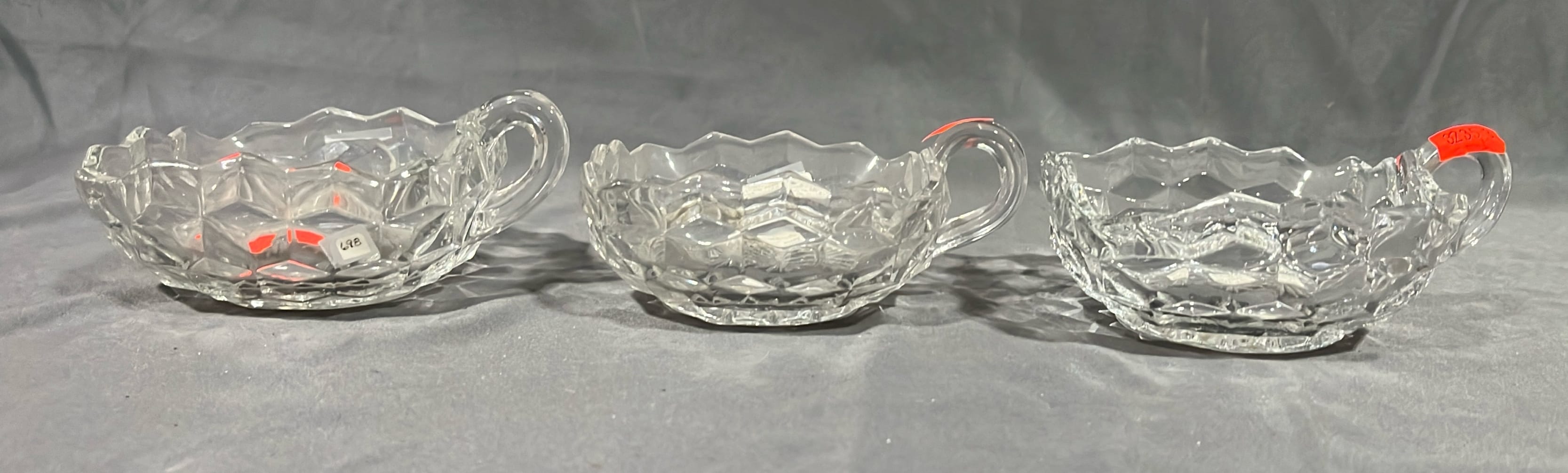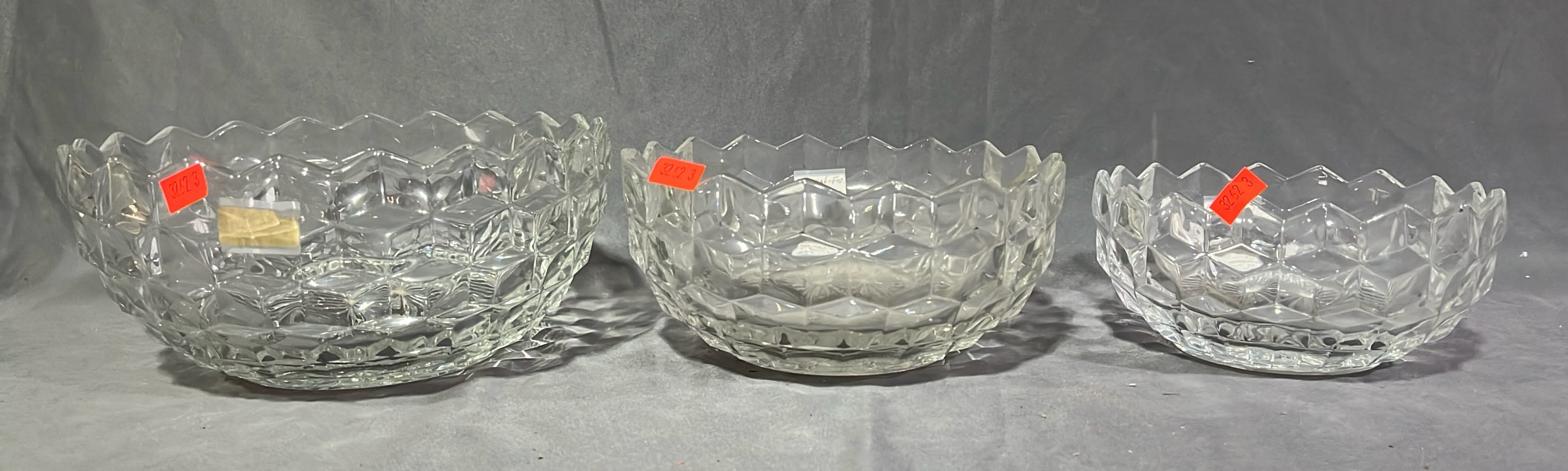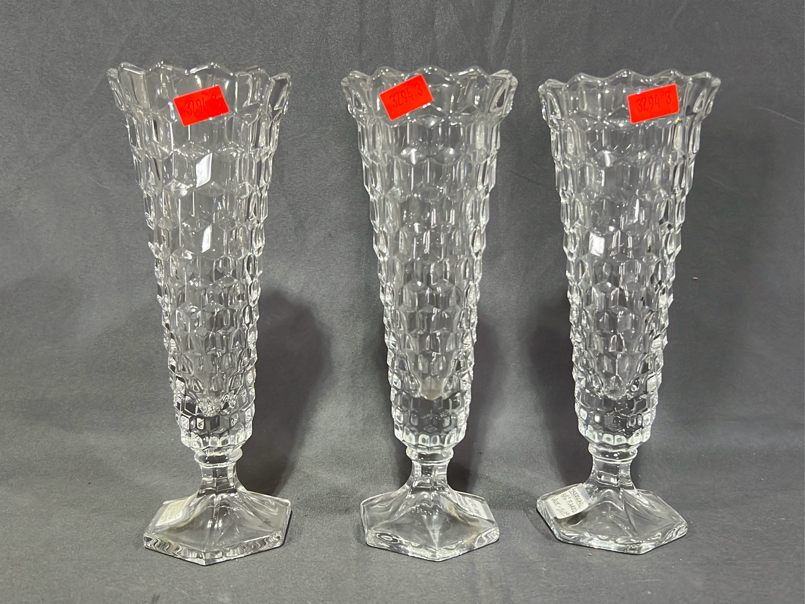 3001 Three - Fostoria American Footed Bon Bon & Tid Bit Plates 6.75”, 7”, 7.5”