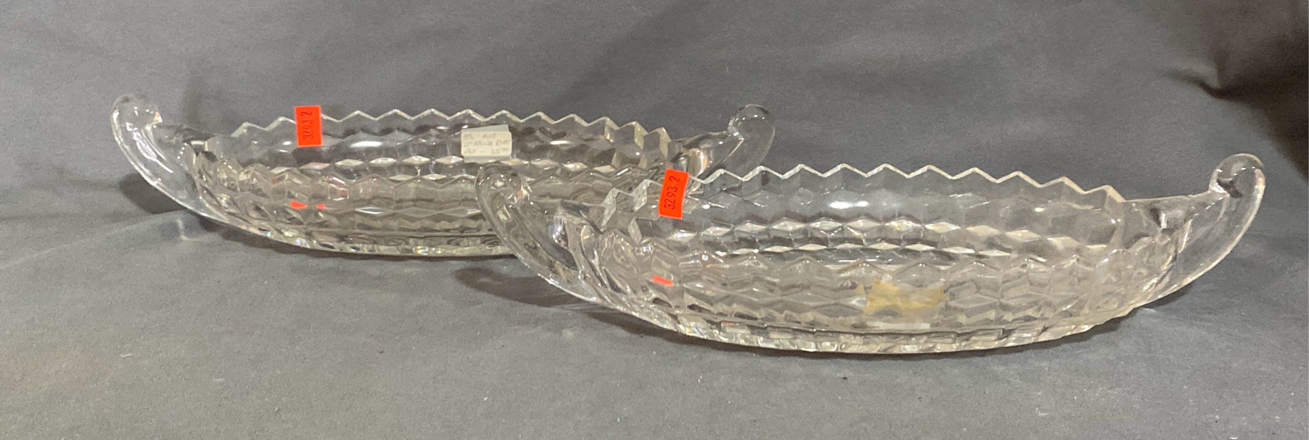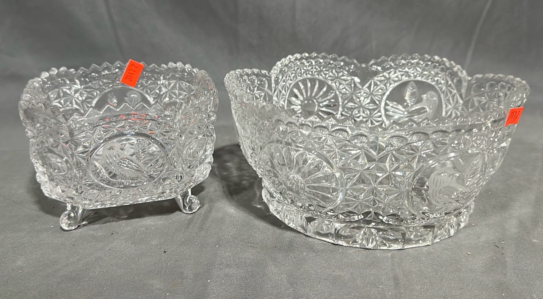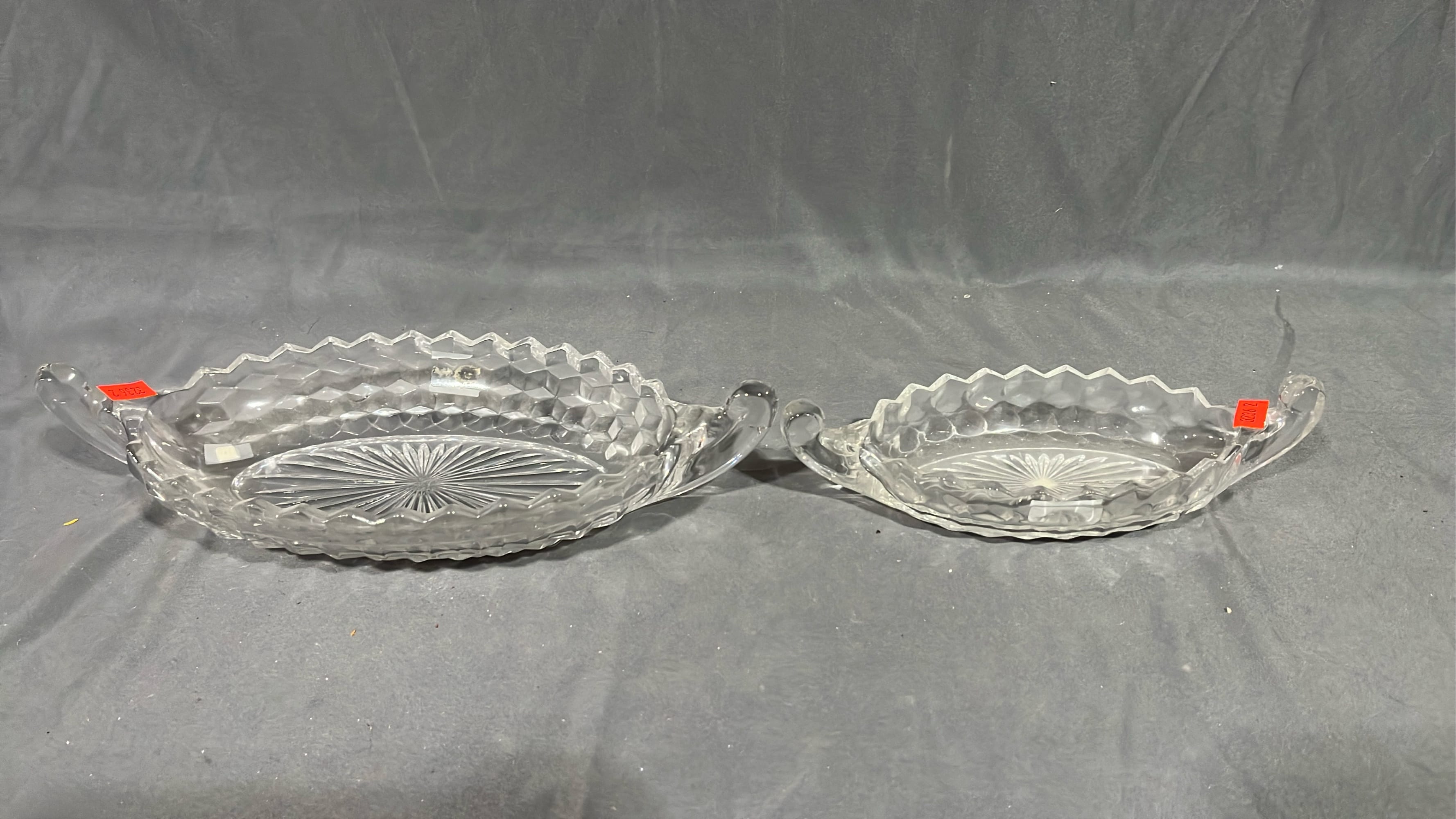 3045 Cambridge Glass 2 Handled Bon Bon Candy Dish Wildflower Etch 6.75”x5”