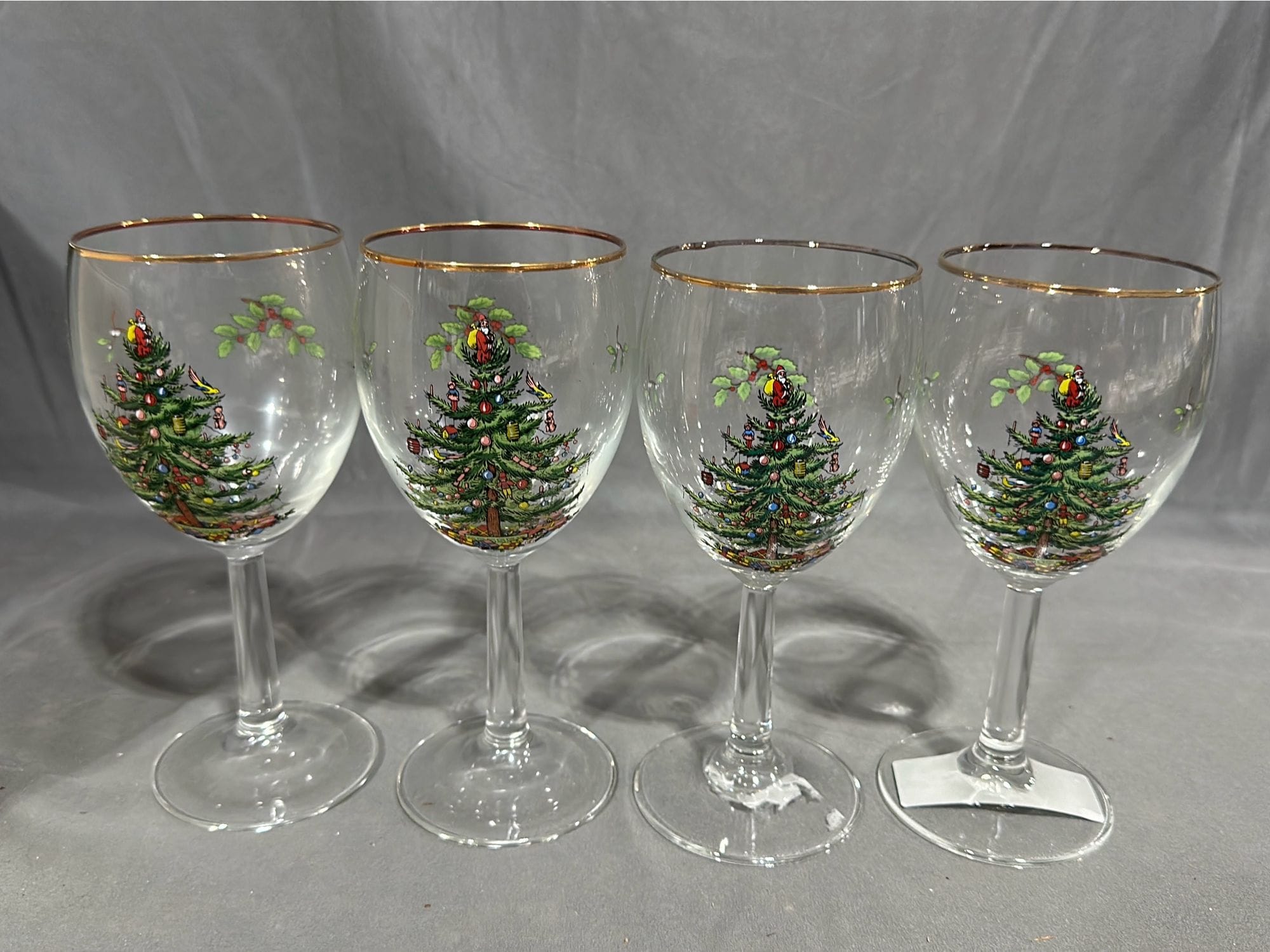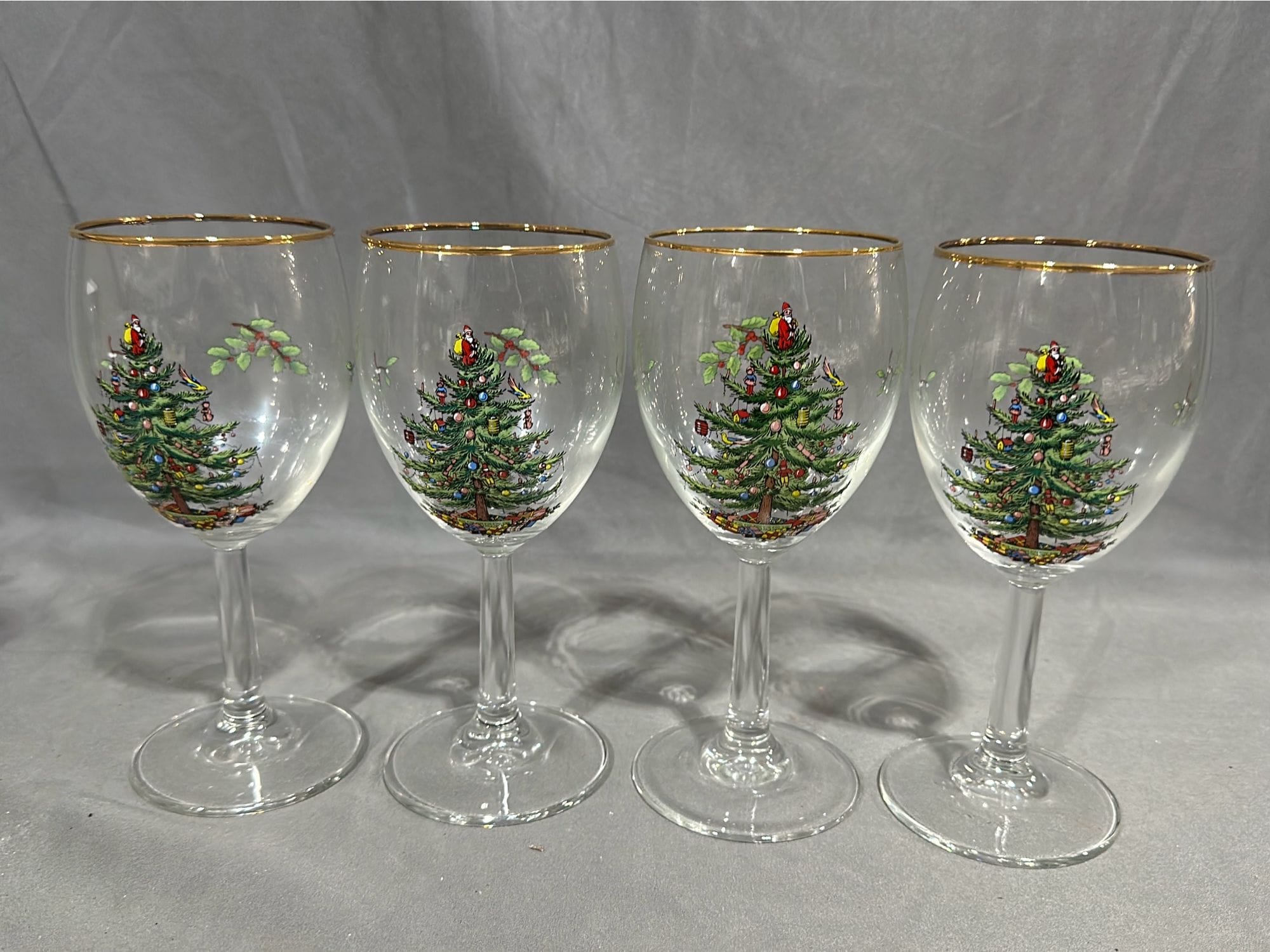 3053 Two - Spode Christmas Tree Candle Holders 5.5” • Spode Christmas Tree One-Tier Cookie Tray 10.5” • Eight - Spode Christmas Tree Plates 10.5”