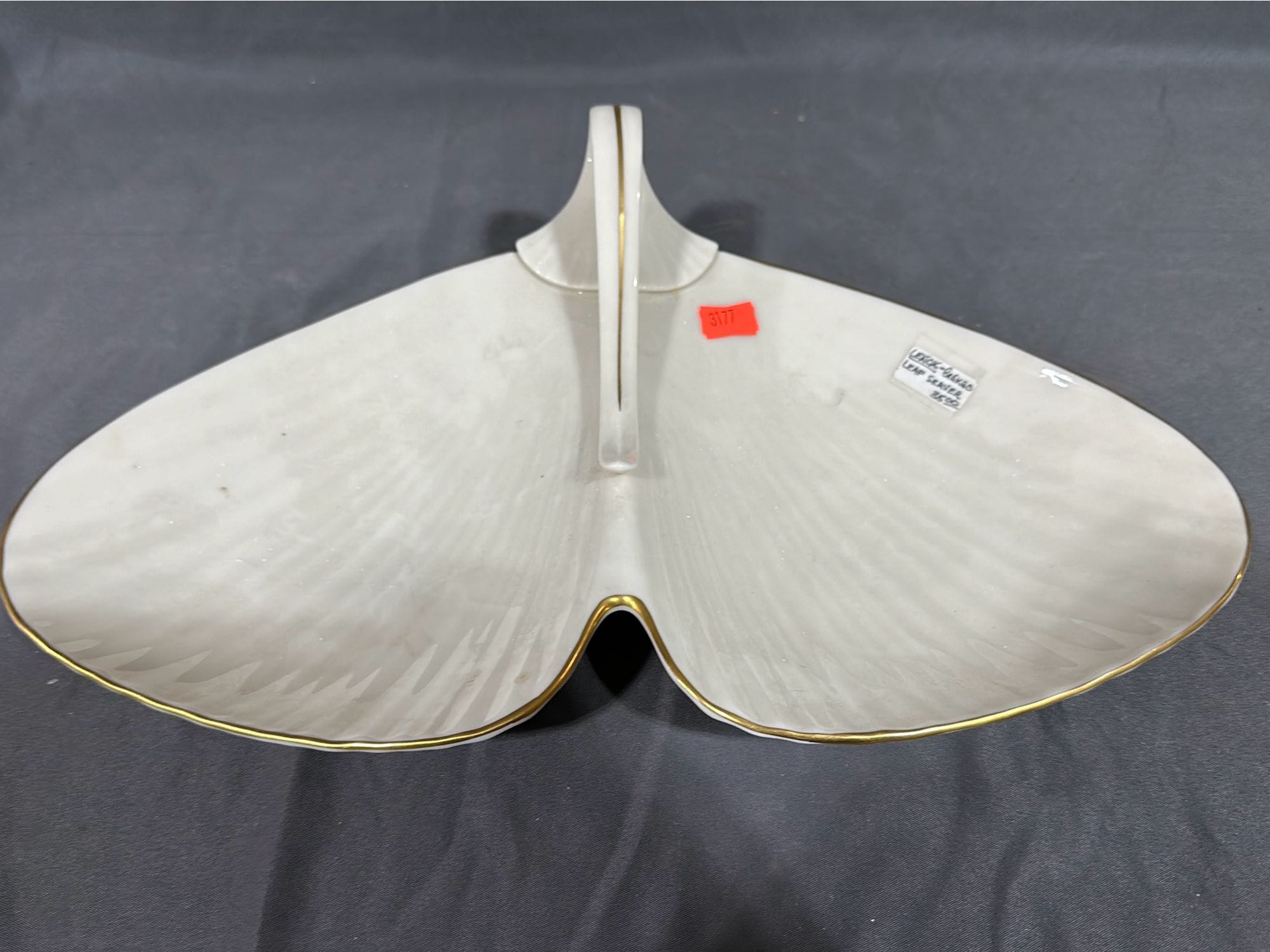 3015 Spode Beaumont bone china 3 section Nut Candy dish In White and Gold 9.5”