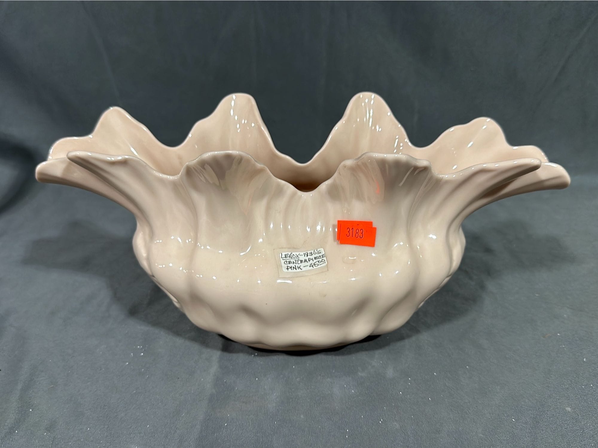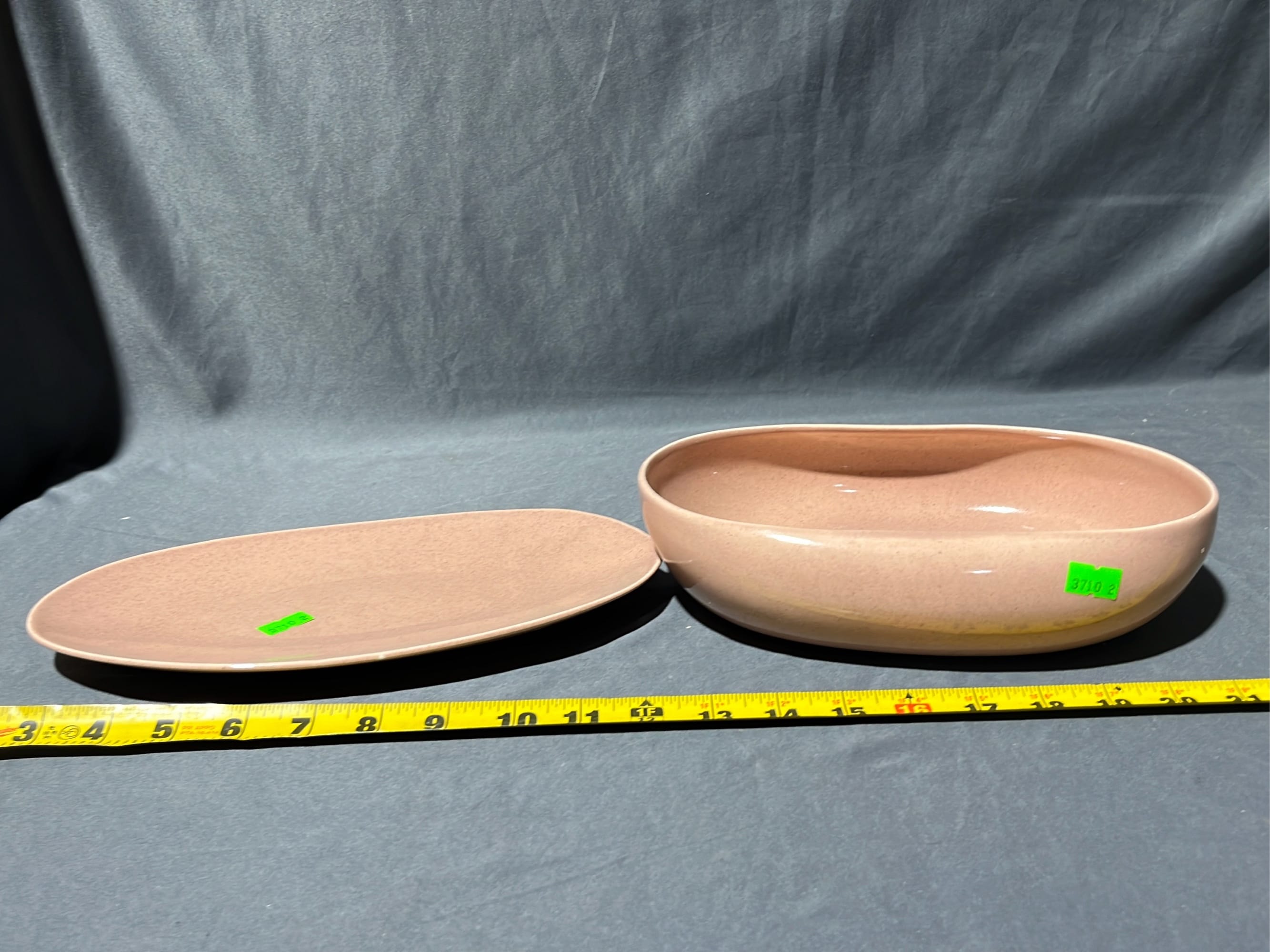 3710 Russell Wright Pink speckled relish Tray and veg. bowl