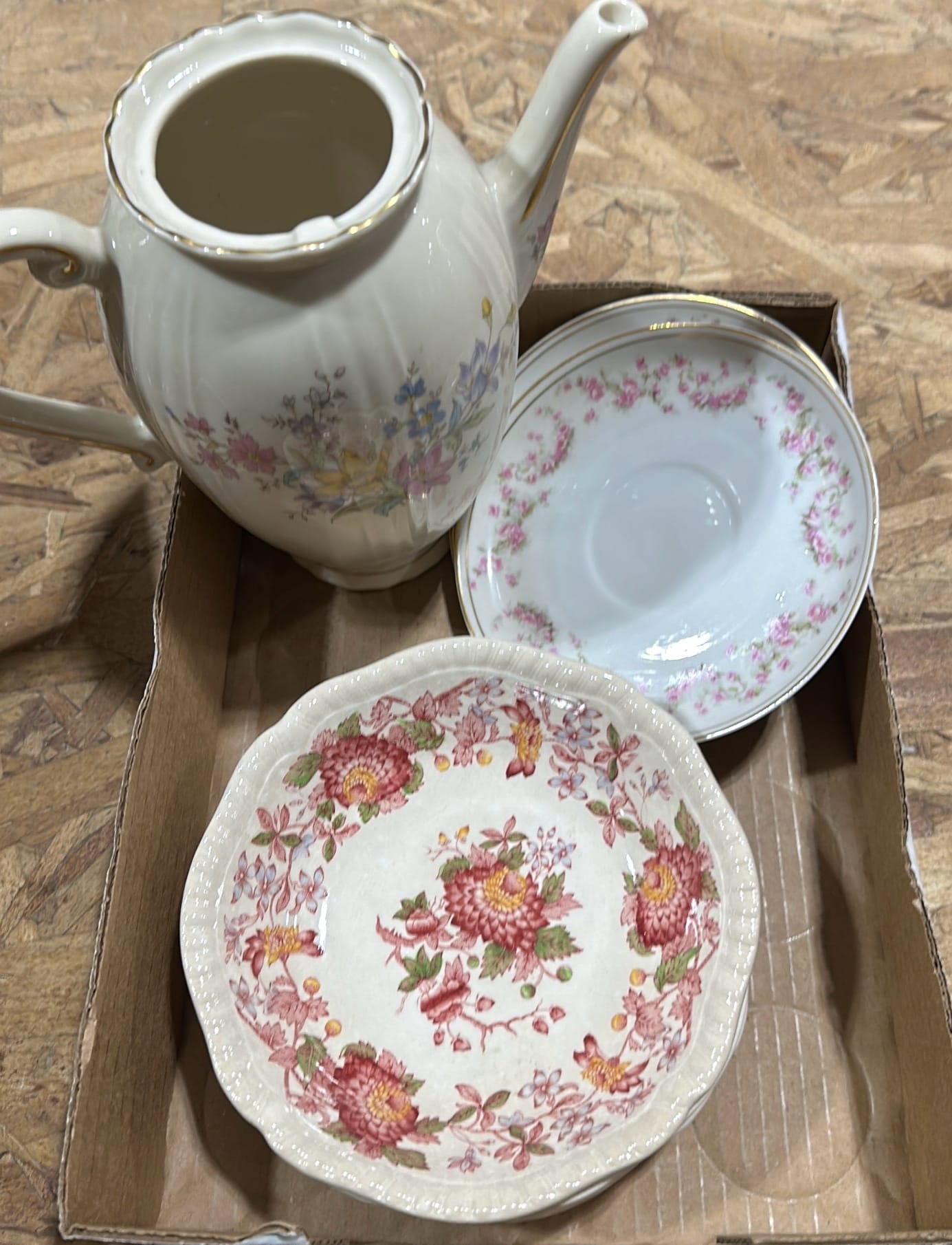 3729 5 Small decorative dessert plates 7", dinner plate 10"