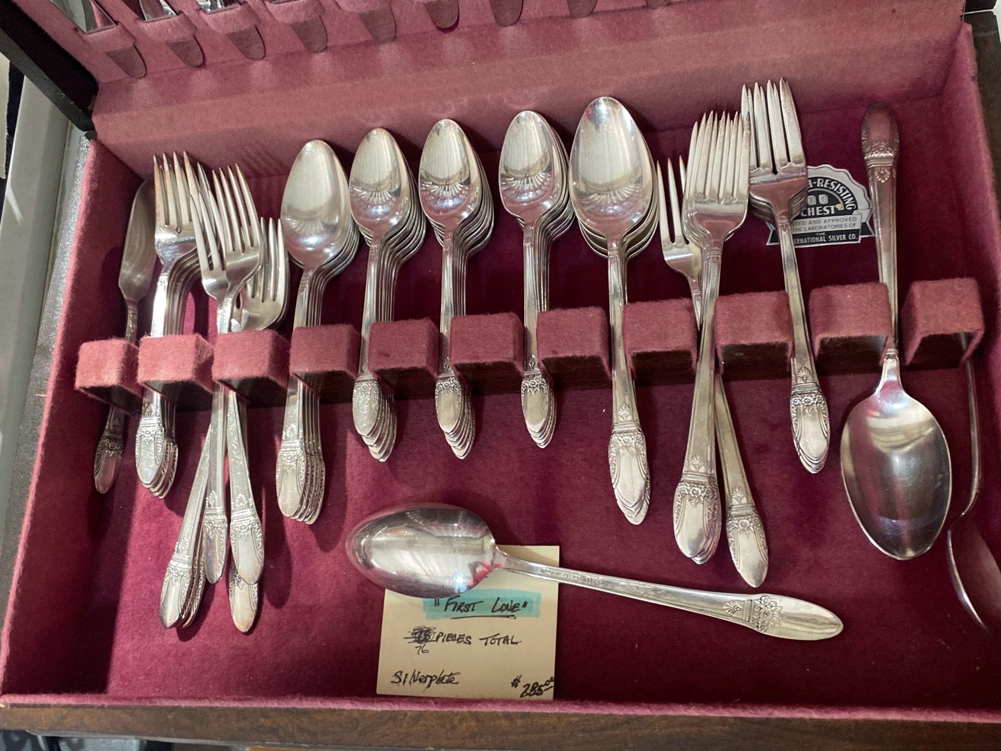 Sterling Silver & Silver Plate - Oil Paintings & Prints, some local artists, - Display Cases - 600+ Glass Collection: Flow Blue, Fenton, Sets of Flatware, Jewel Tea, Lenox, Limoges, Haviland, Johnson Bros., Fostoria, Fiesta, Crystal, Lefton, Carnival, Hobnail, Porcelain, Goebel & More!