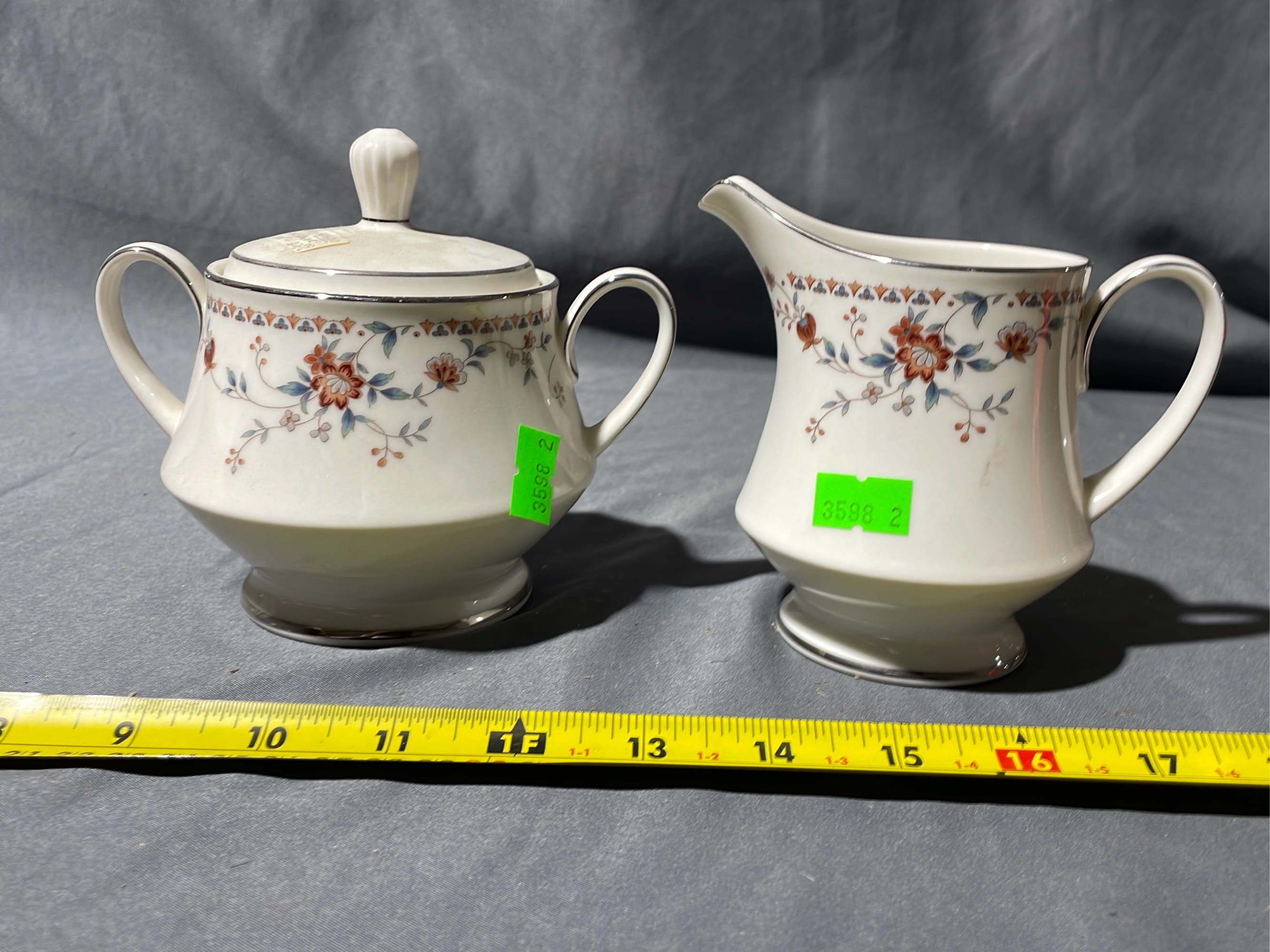 3078 Noritake handpainted what-not tray 8”, teacup 3”, creamer 3.5”
