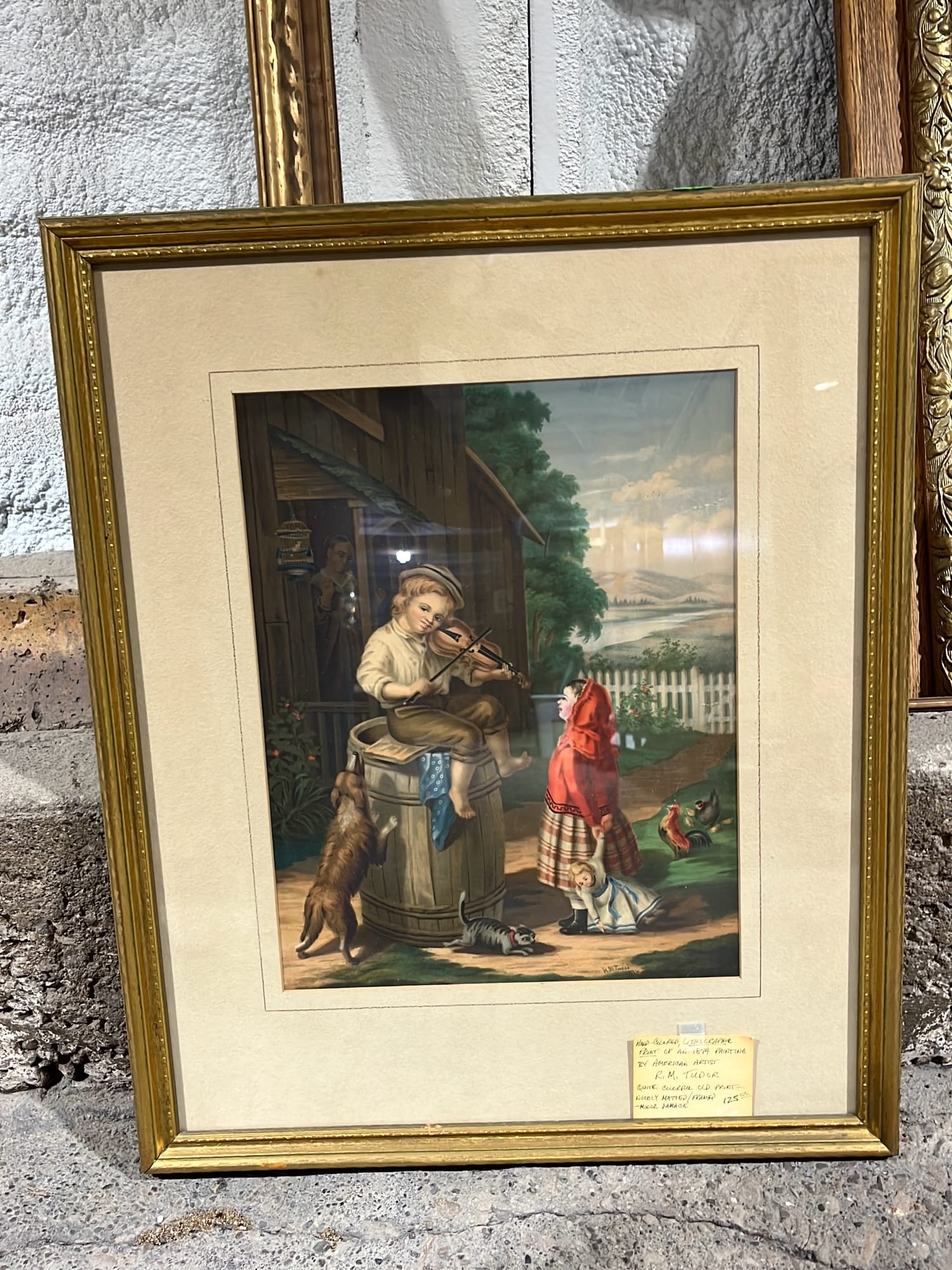 3762 R.M. Tudor Hand colored Litho print with some creases, framed 19x23.5"