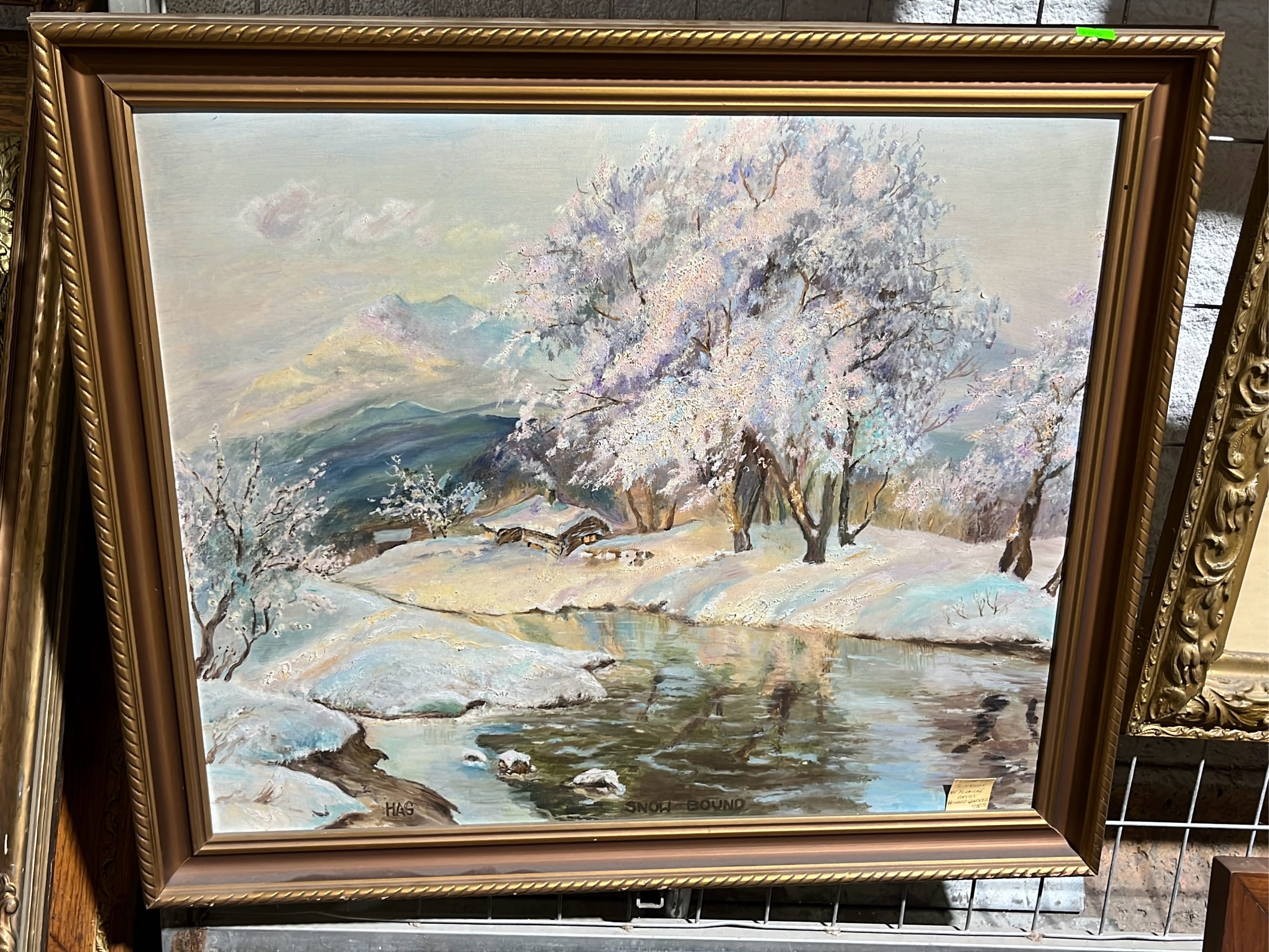 3766 Howard Garver oil on canvas Snowbound painting, framed, artist from Michigan 27x23"