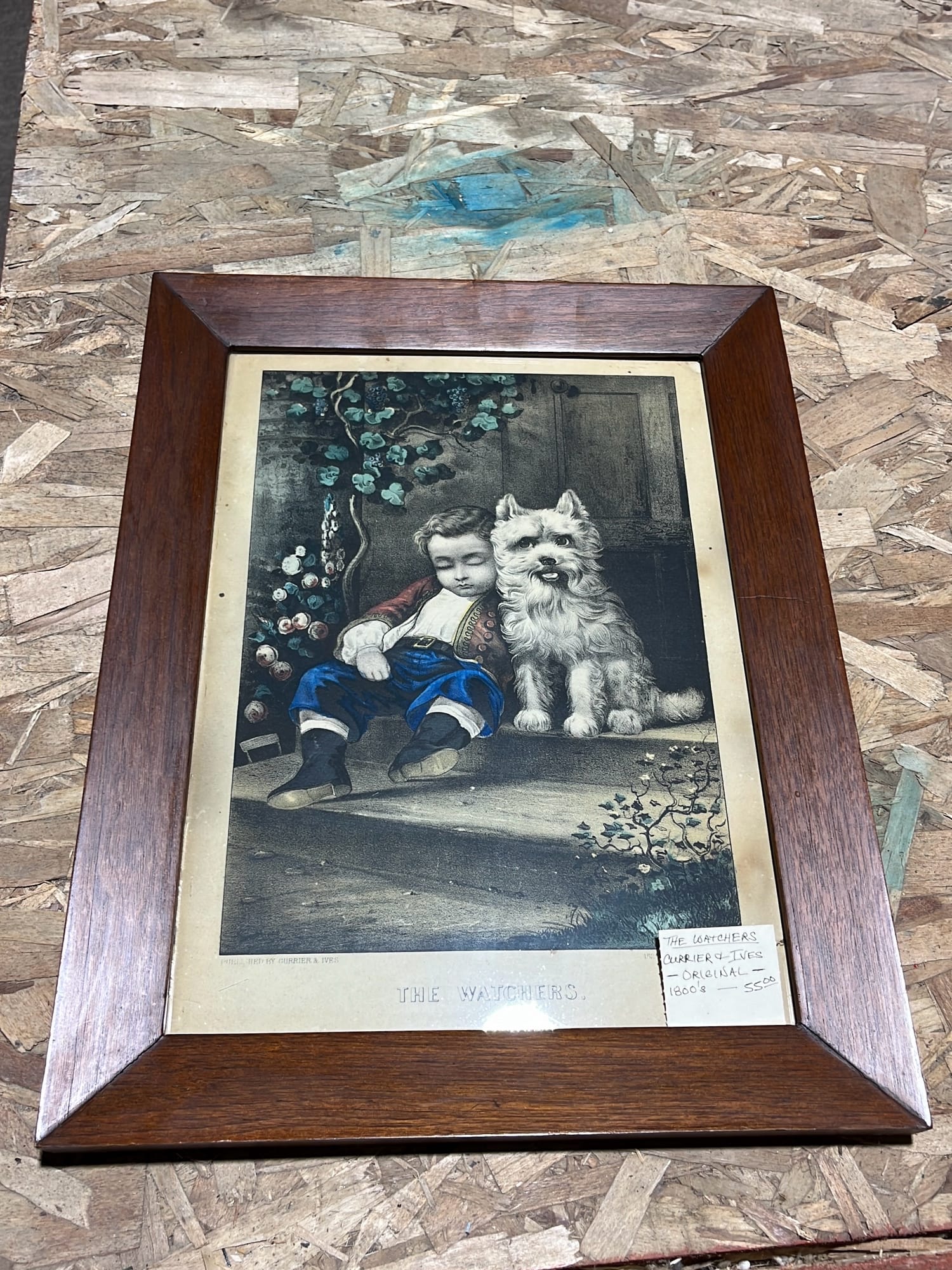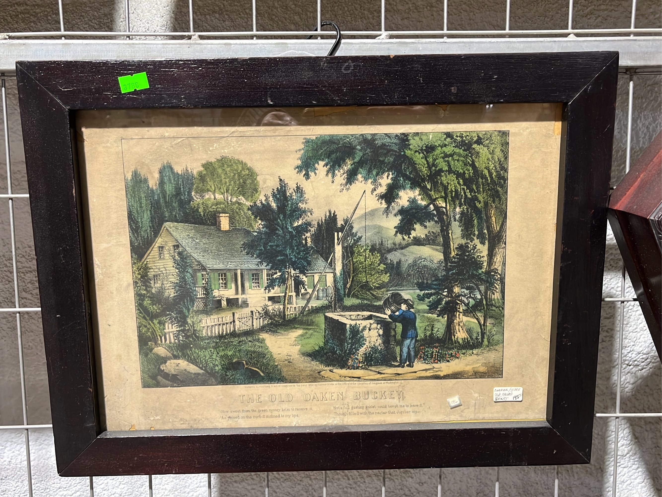 3788 Framed Currier & Ives Old Oaken Bucket picture 19x14