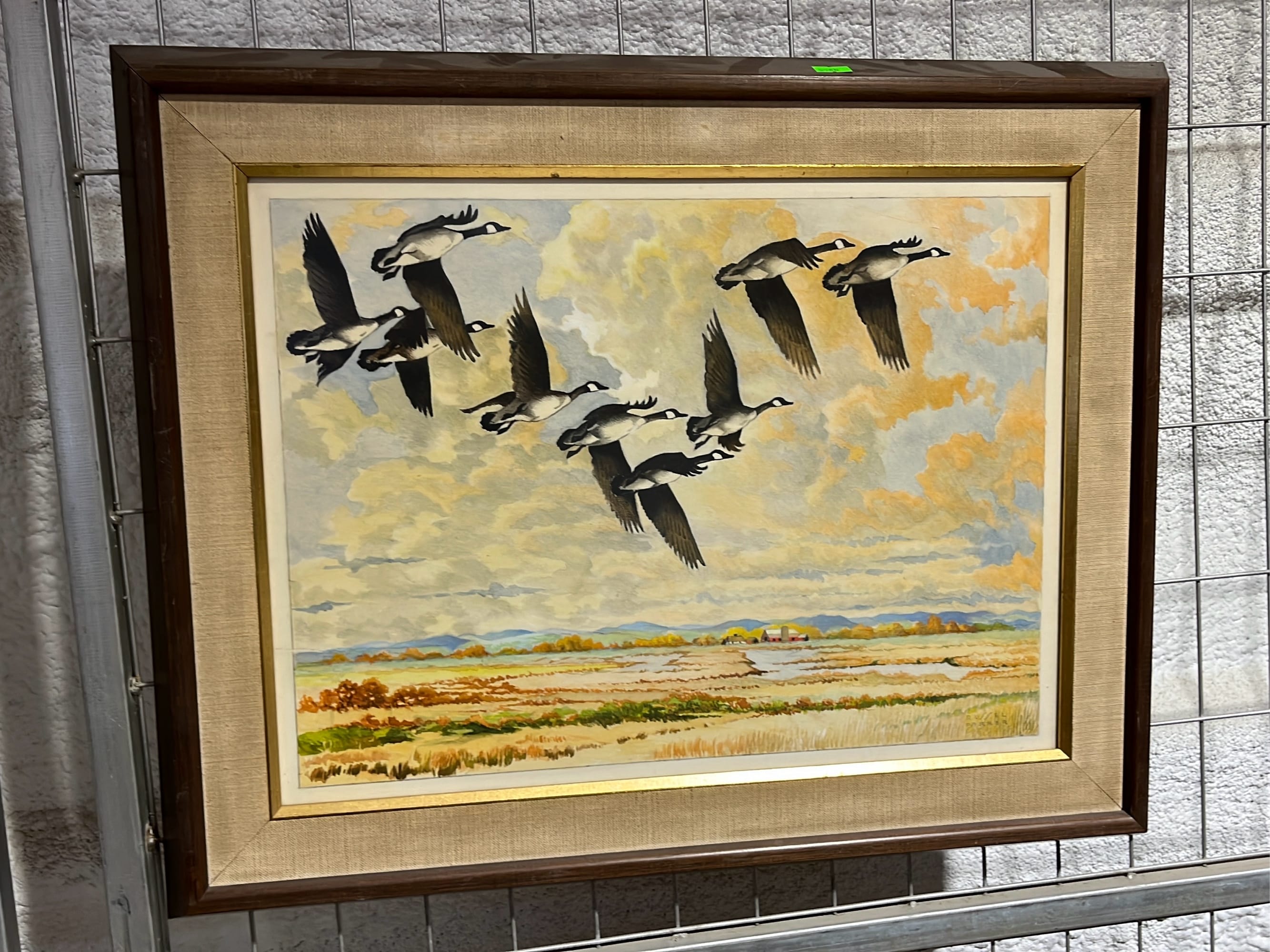 3780 Framed Russell Parker watercolor "Autumn Flight" 20x24"