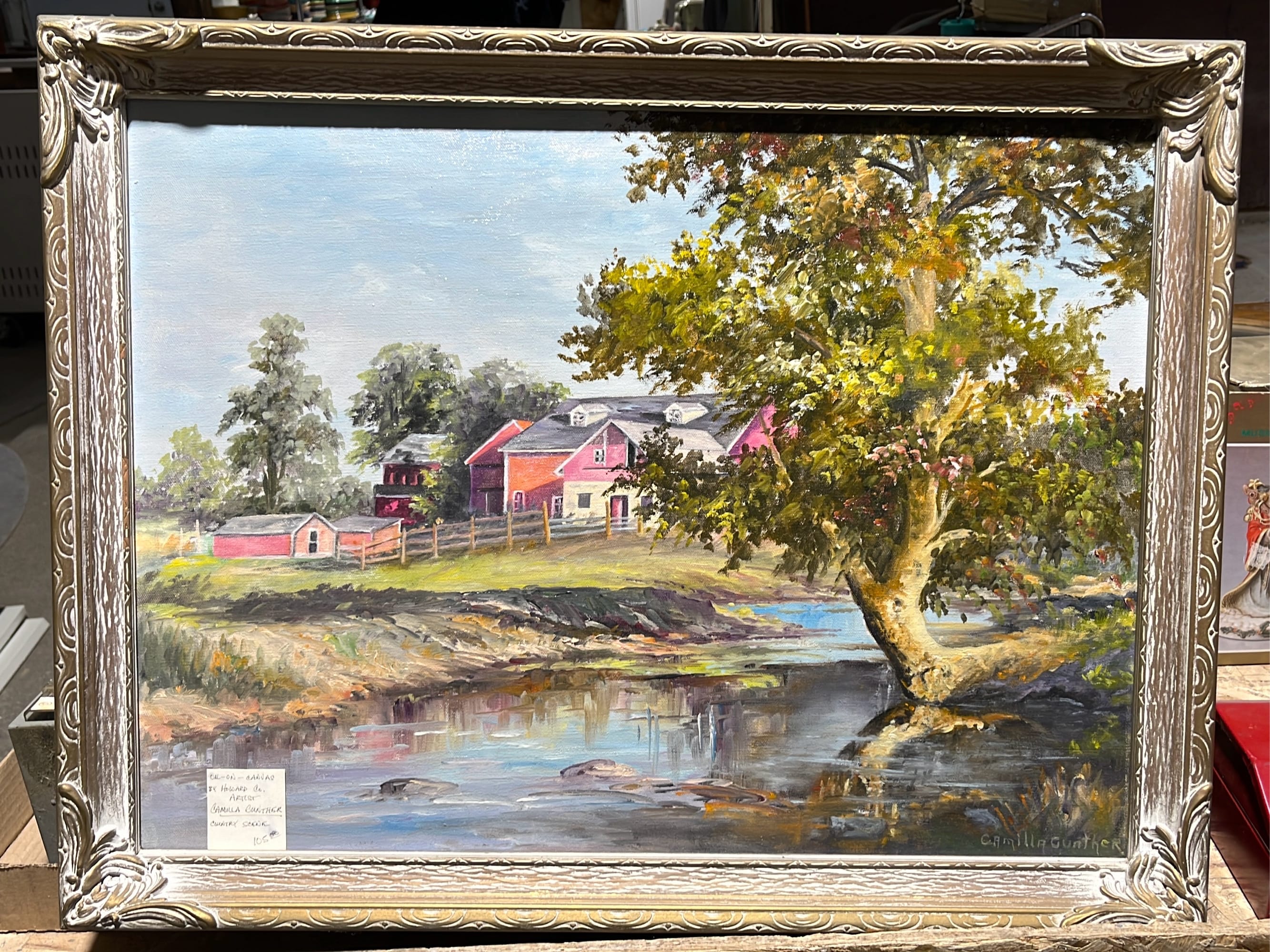 3783 Ornate Framed Oil on canvas by Camilla Gunther, 'Country Scene' a Howard County Artist 27x21