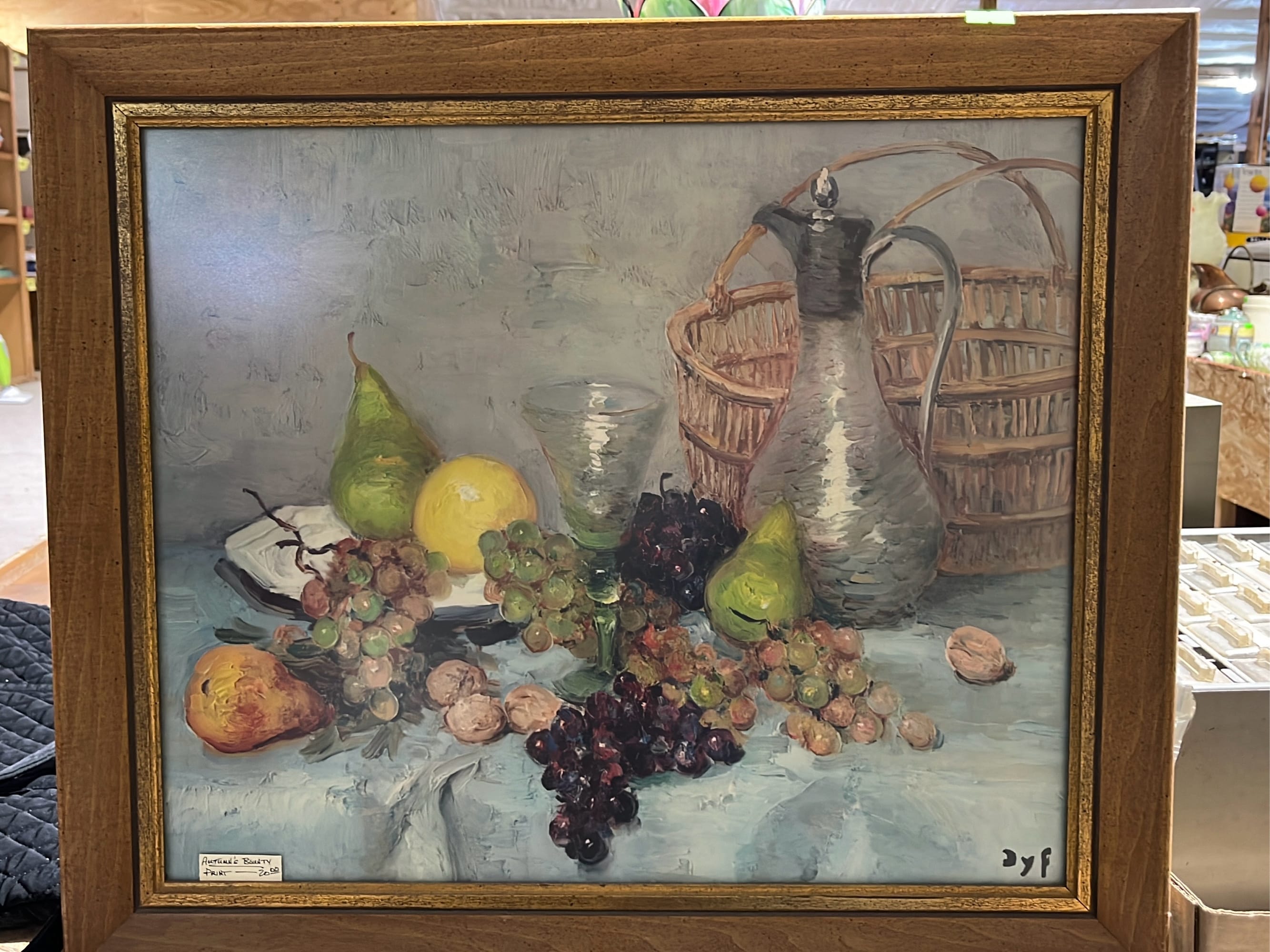 3764 Antique Carved Framed Currier and Ives fruit bowl print 15x19.5"