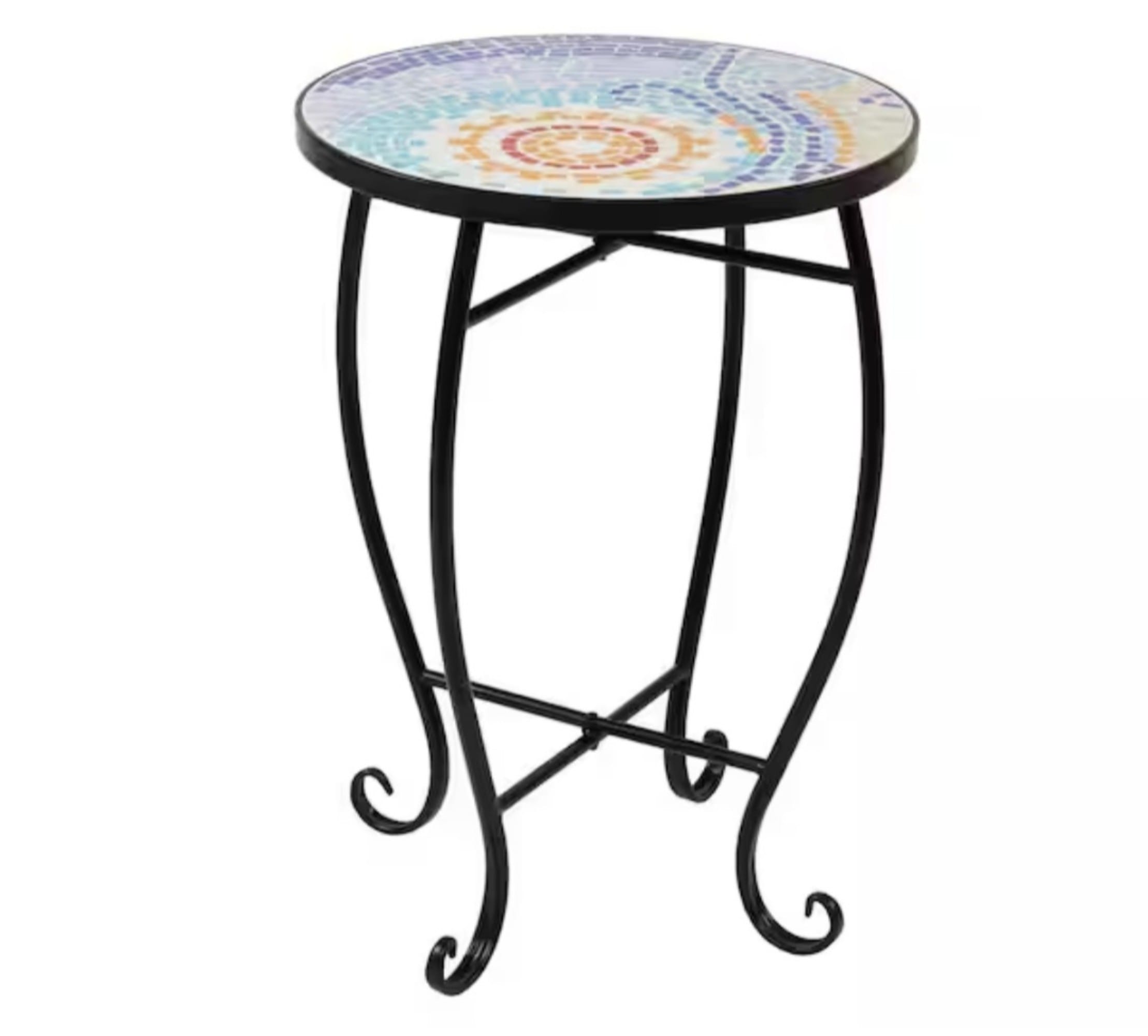 11 Metal and Ceramic Tile Mosaic Patio Side Table