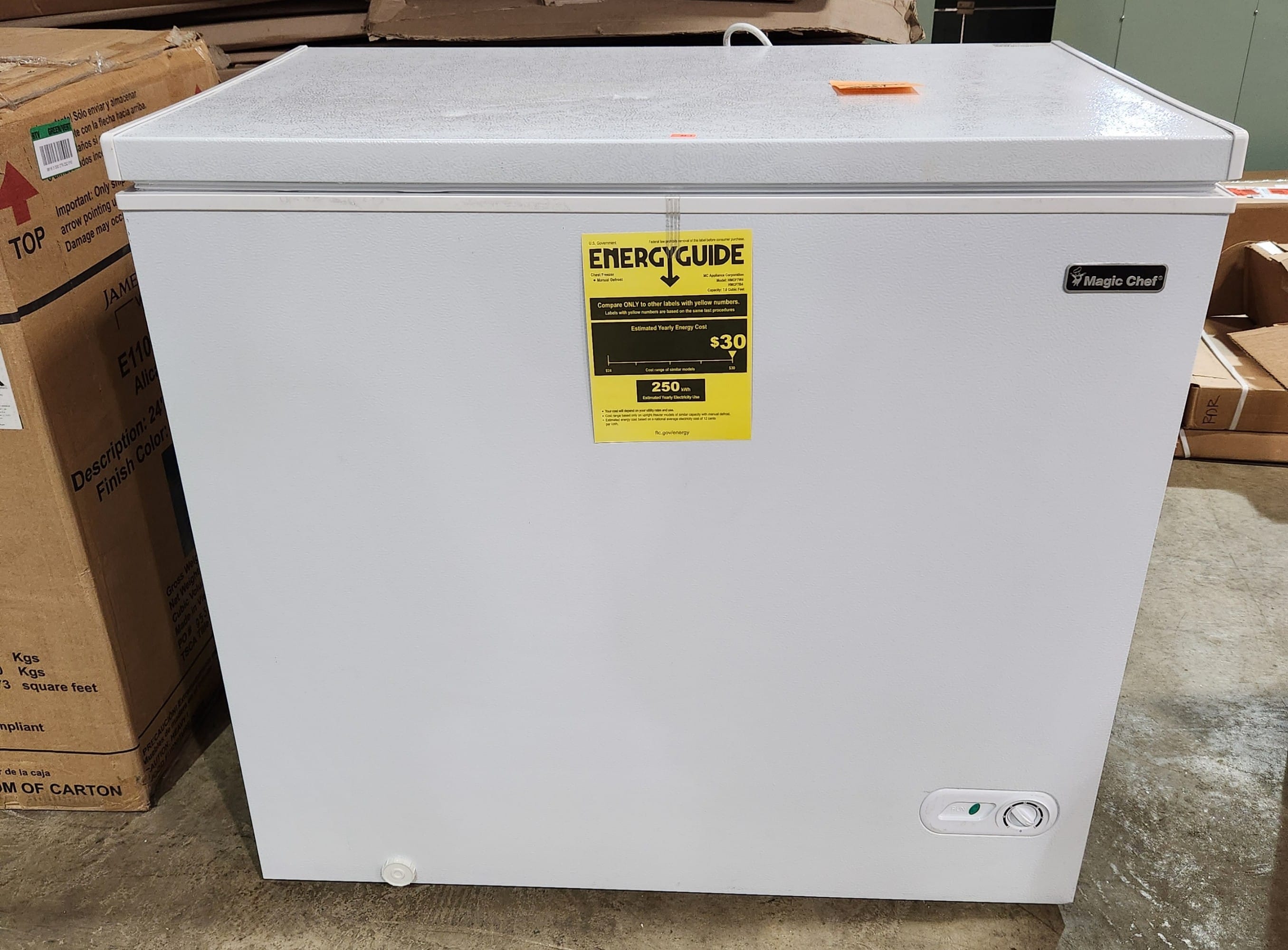 63 "Magic Chef 7.0 cu. ft. Chest Freezer in White Has dents and dings"