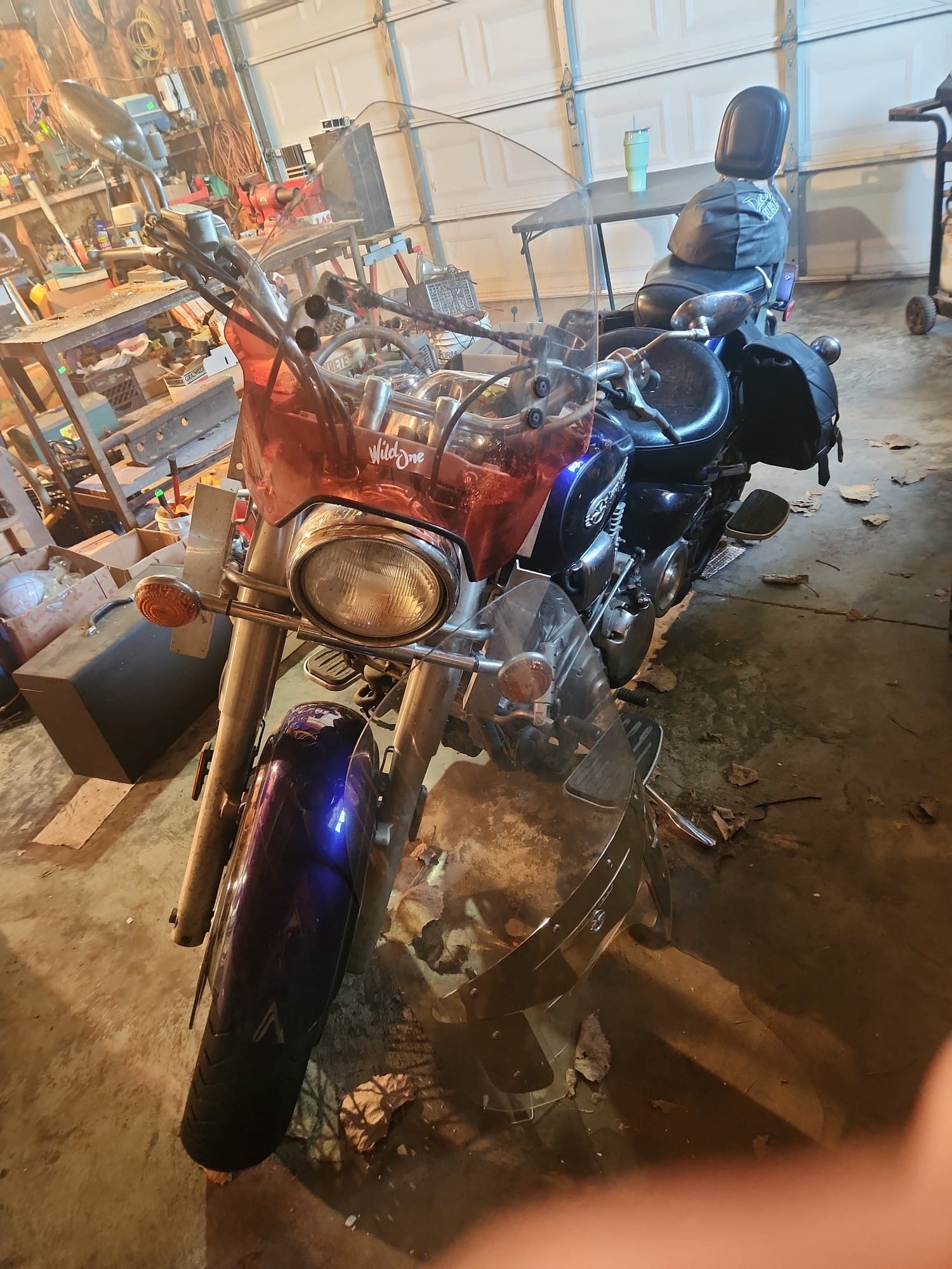1 2003 Yamaha Road Star Motorcycle, XV 1600 AS extra windshield, saddlebags, cover, passenger floor board/standard, helmet, Ran a little over a year ago, Needs battery, 44,589 miles, VIN# jyavp02e33a021851 - a $25 title fee will be added to the winning invoice