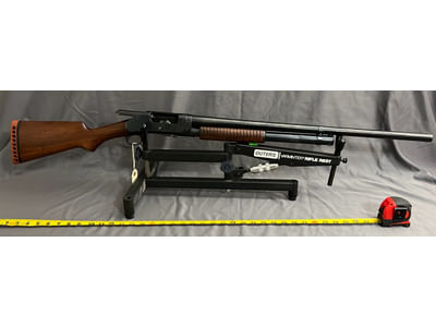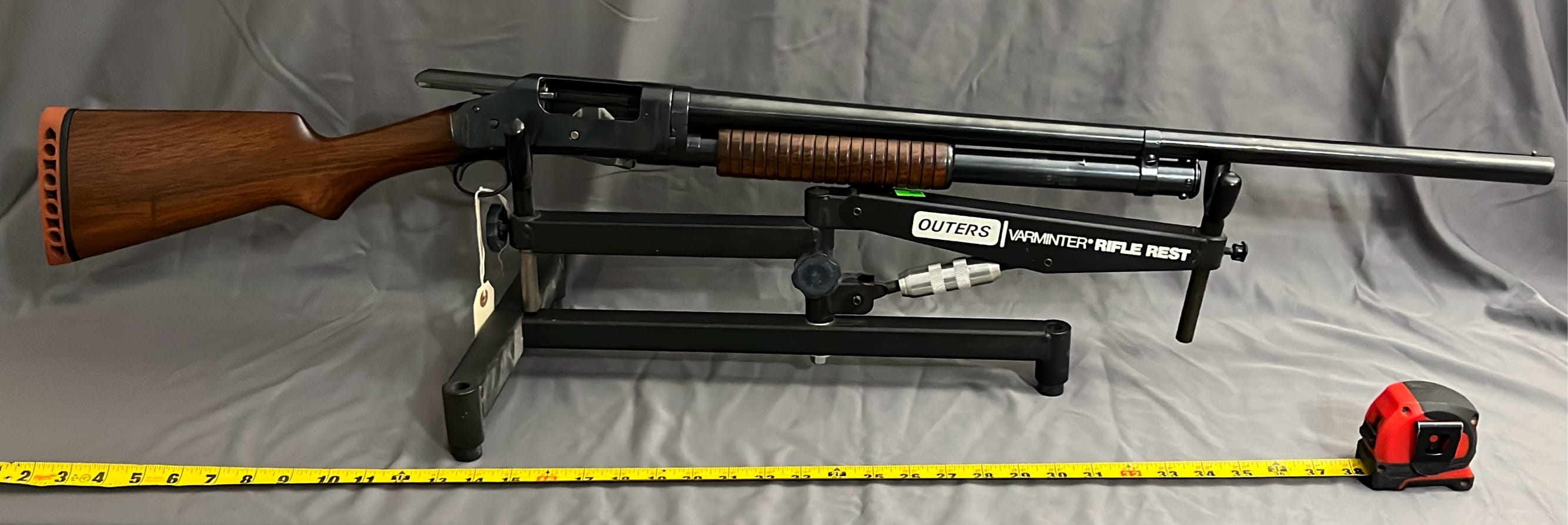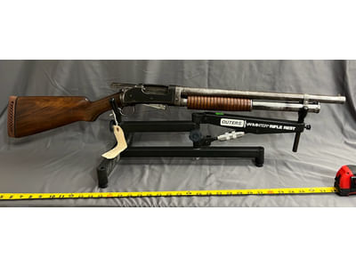 15 Winchester Model 1897 12ga Pump shotgun, barrel 17 3/8", serial number 392089, rifle rest not included