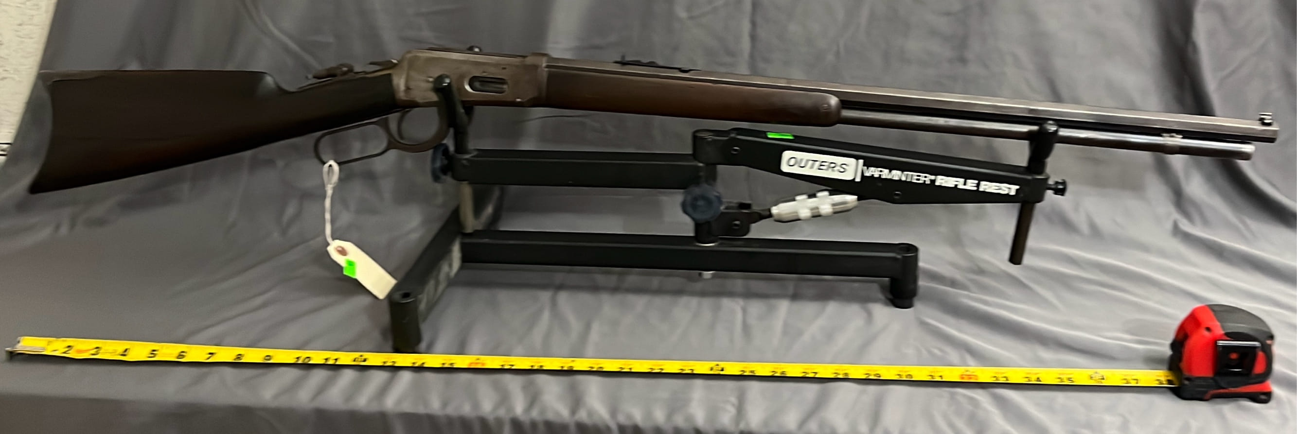 13 Winchester .32-40 Lever action Rifle with octagon barrel and peep sights, rifle rest not included