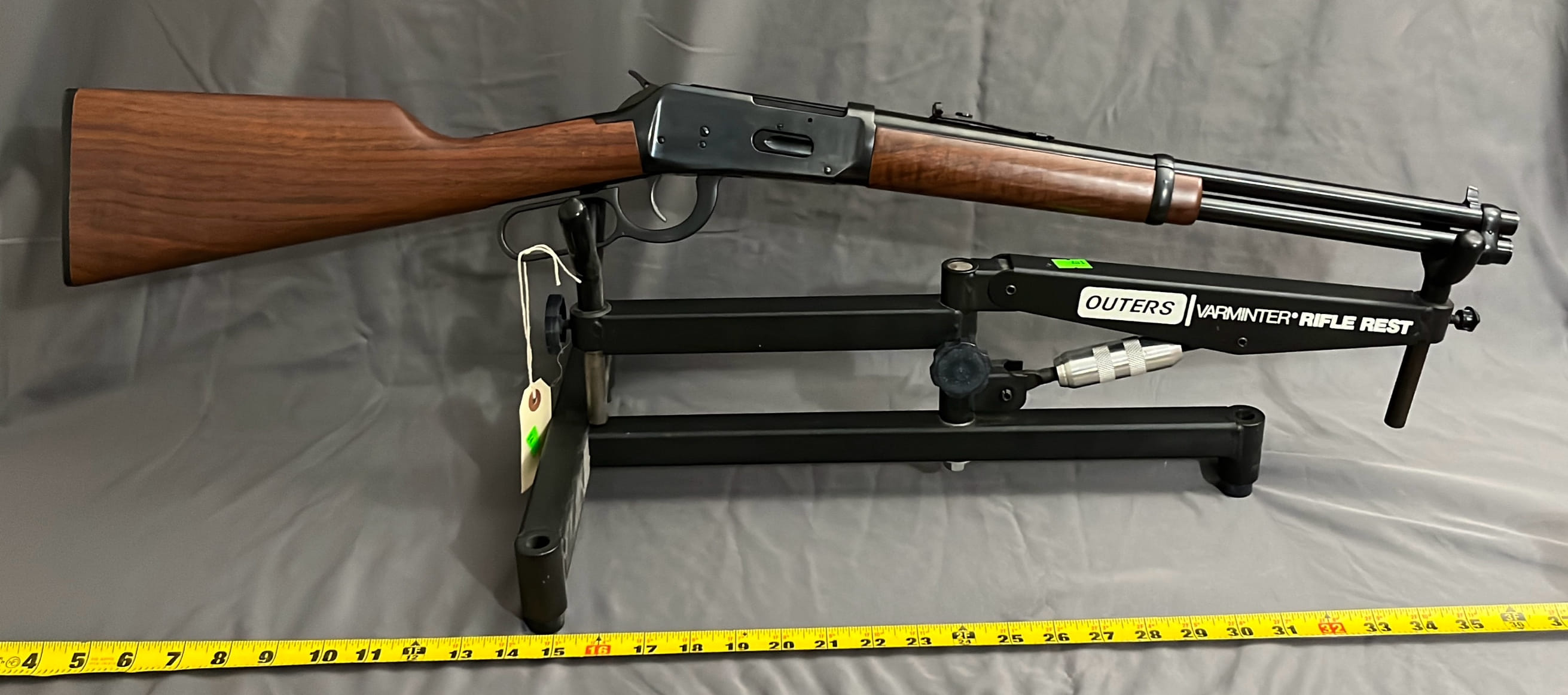 14 Winchester model 94E .44 Rem mag lever action rifle, serial 5586636, rifle rest not included