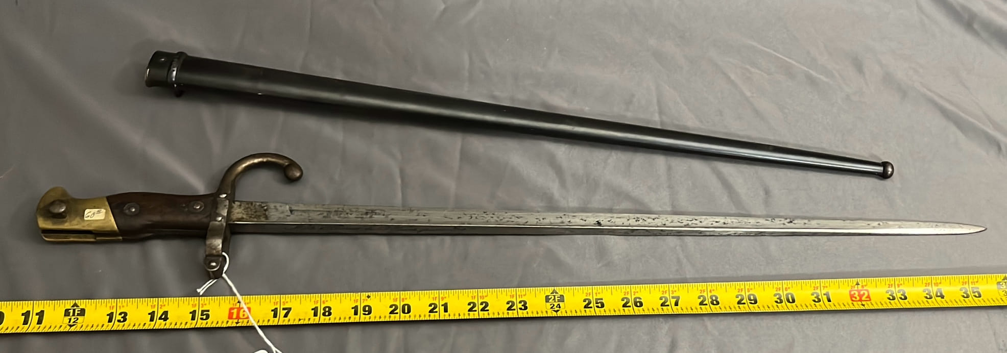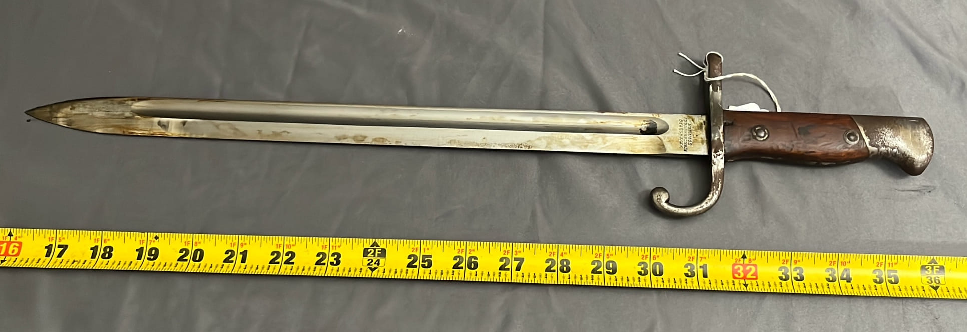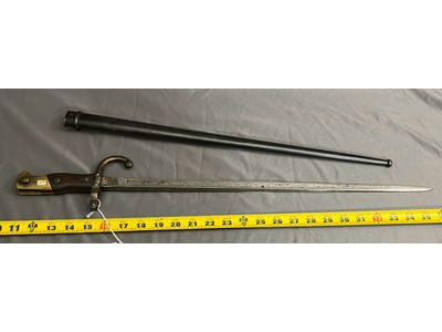 21 French, d'Armes de Saint-Étienne, Bayonet with scabbard, writing on Spine of Bayonet