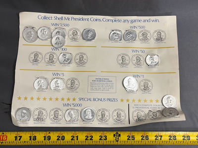 27 Shell Mr. President Souvenir coin collection, 15 coins