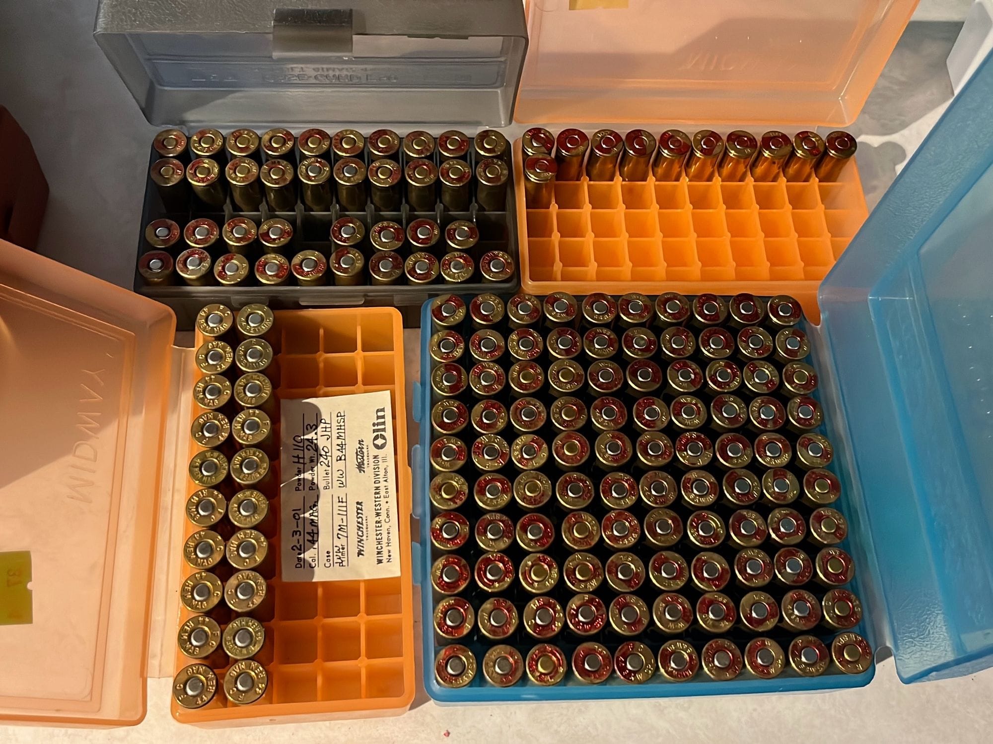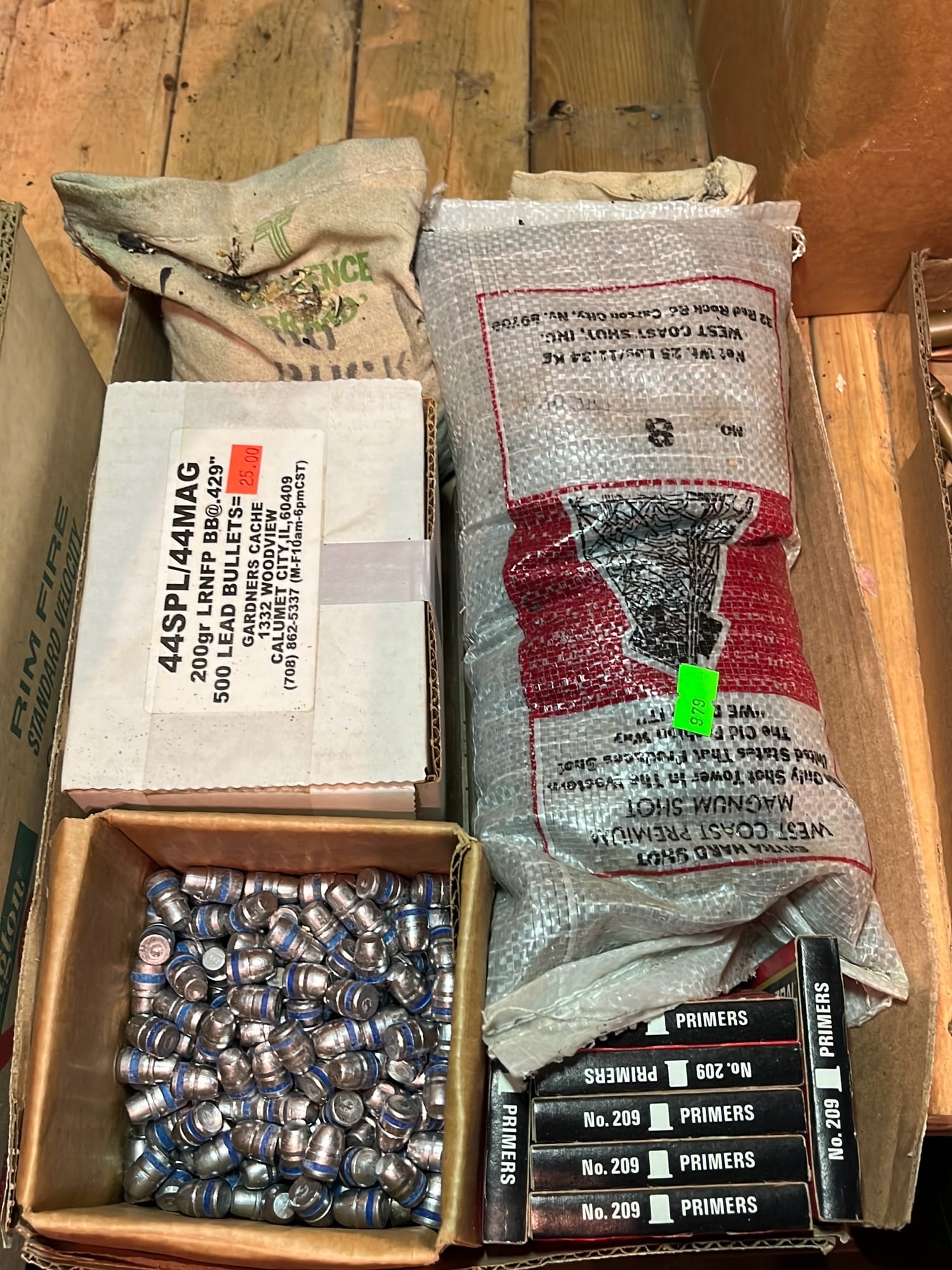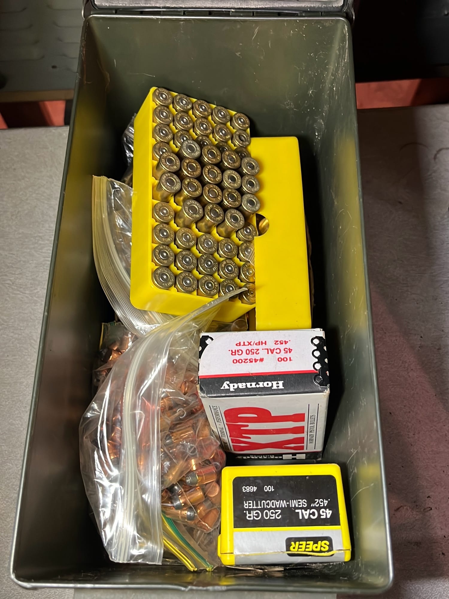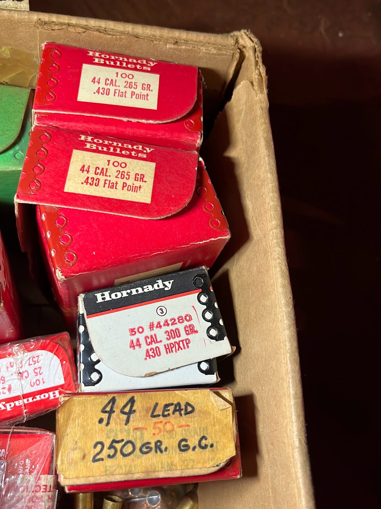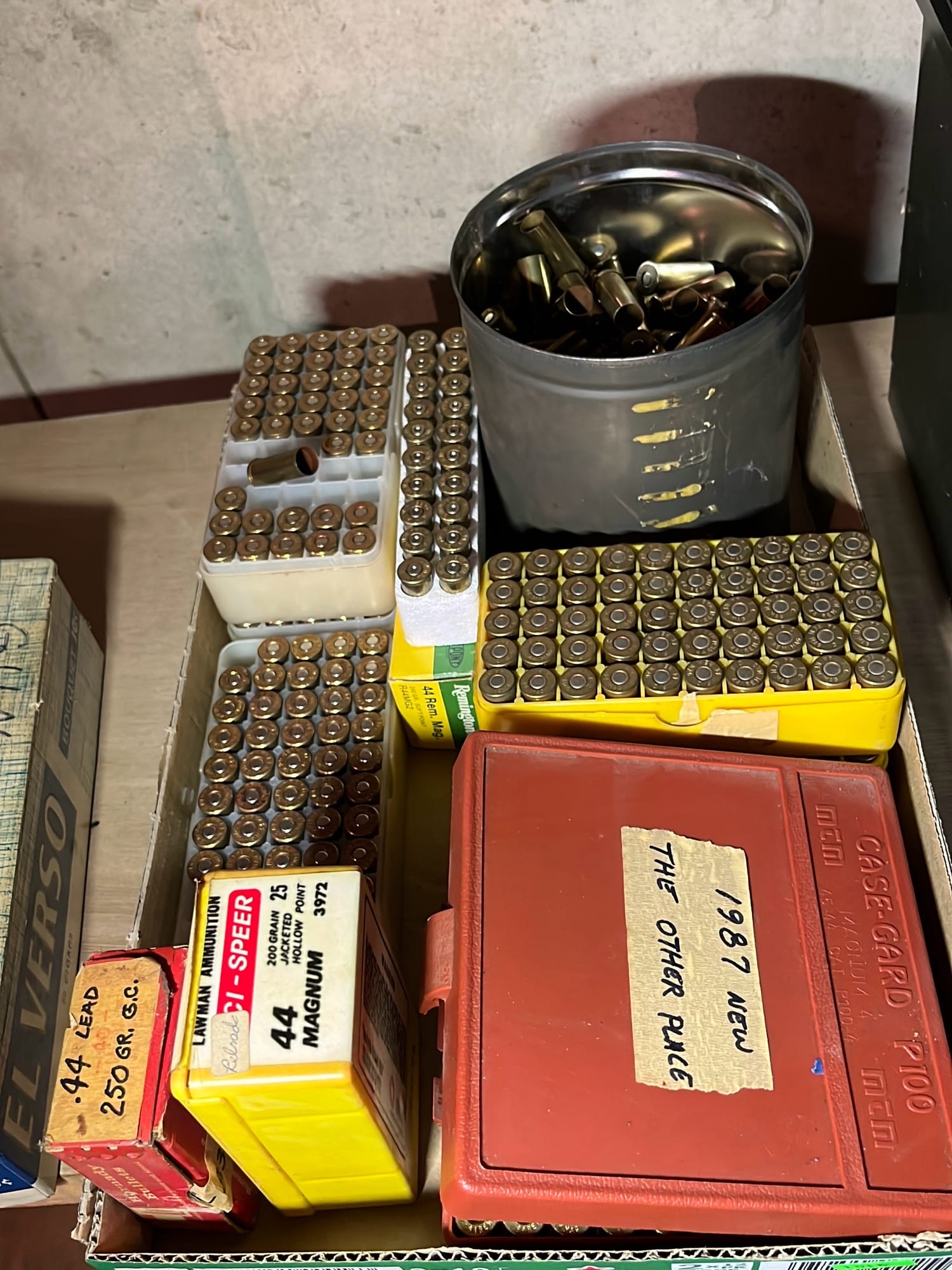 37 Ammo assortment inc. .44 mag - 10ct, .44special - 138ct, .45 colt - 11ct all reloads