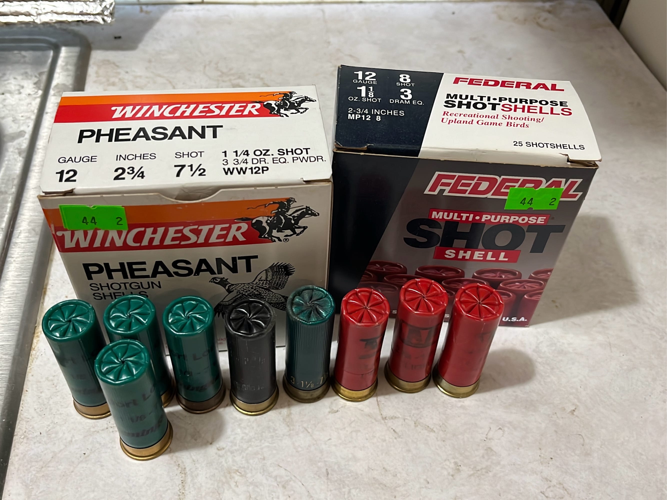44 Federal 12Ga 2 3/4” - 11ct, Winchester 12Ga 2 3/4” - 22ct, assorted 12ga rounds - 10ct