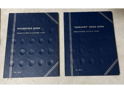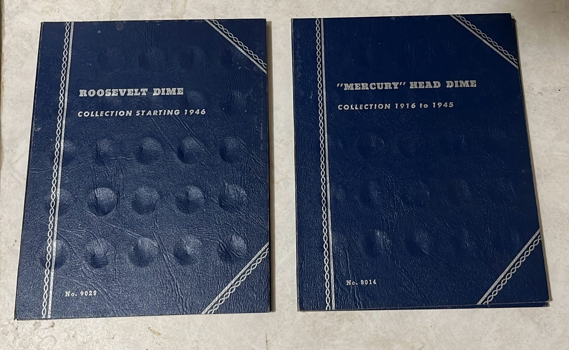 52 Mercury and Roosevelt Dime Collector Books - 10 mercury dimes, roosevelt dimes empty