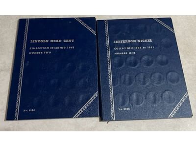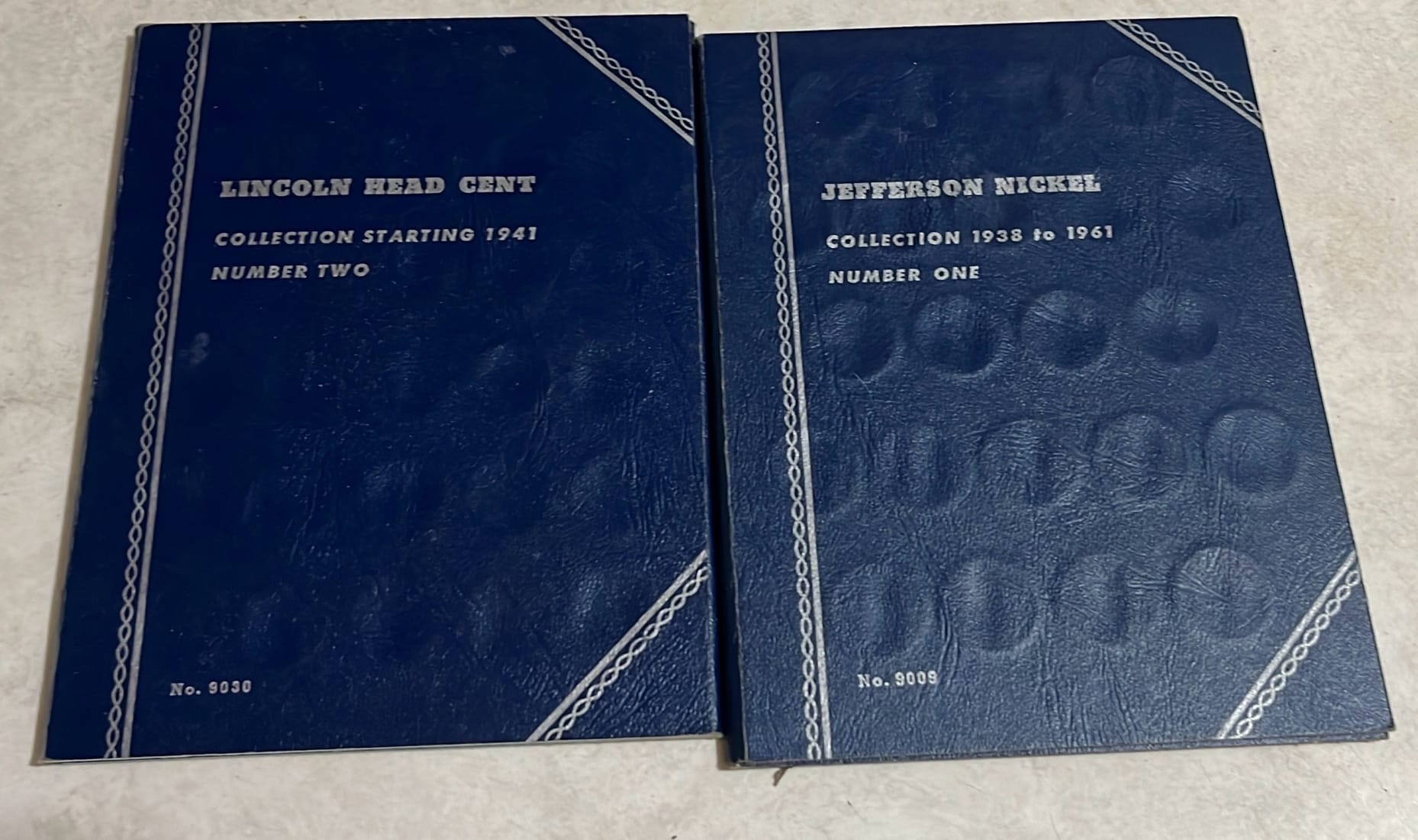 53 Lincoln Head cent collection book 1941-1965 with 76 coins, Jefferson Nickel Book 1938-1945 with 13 coins