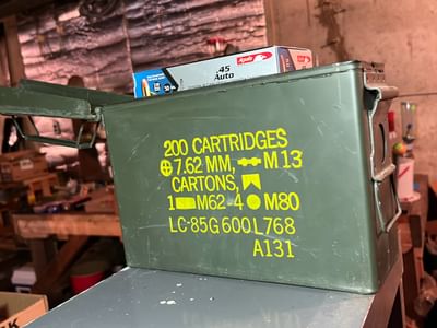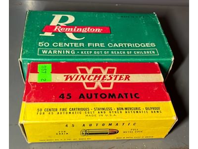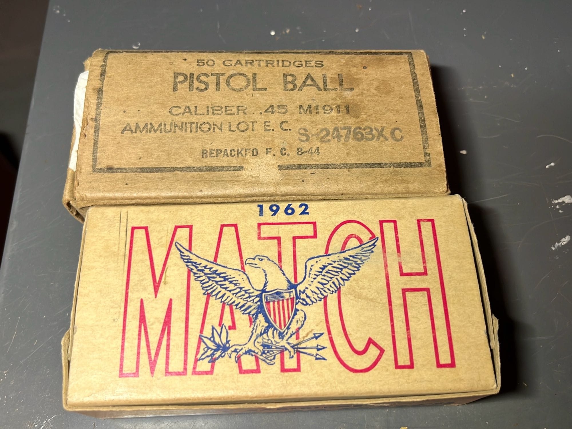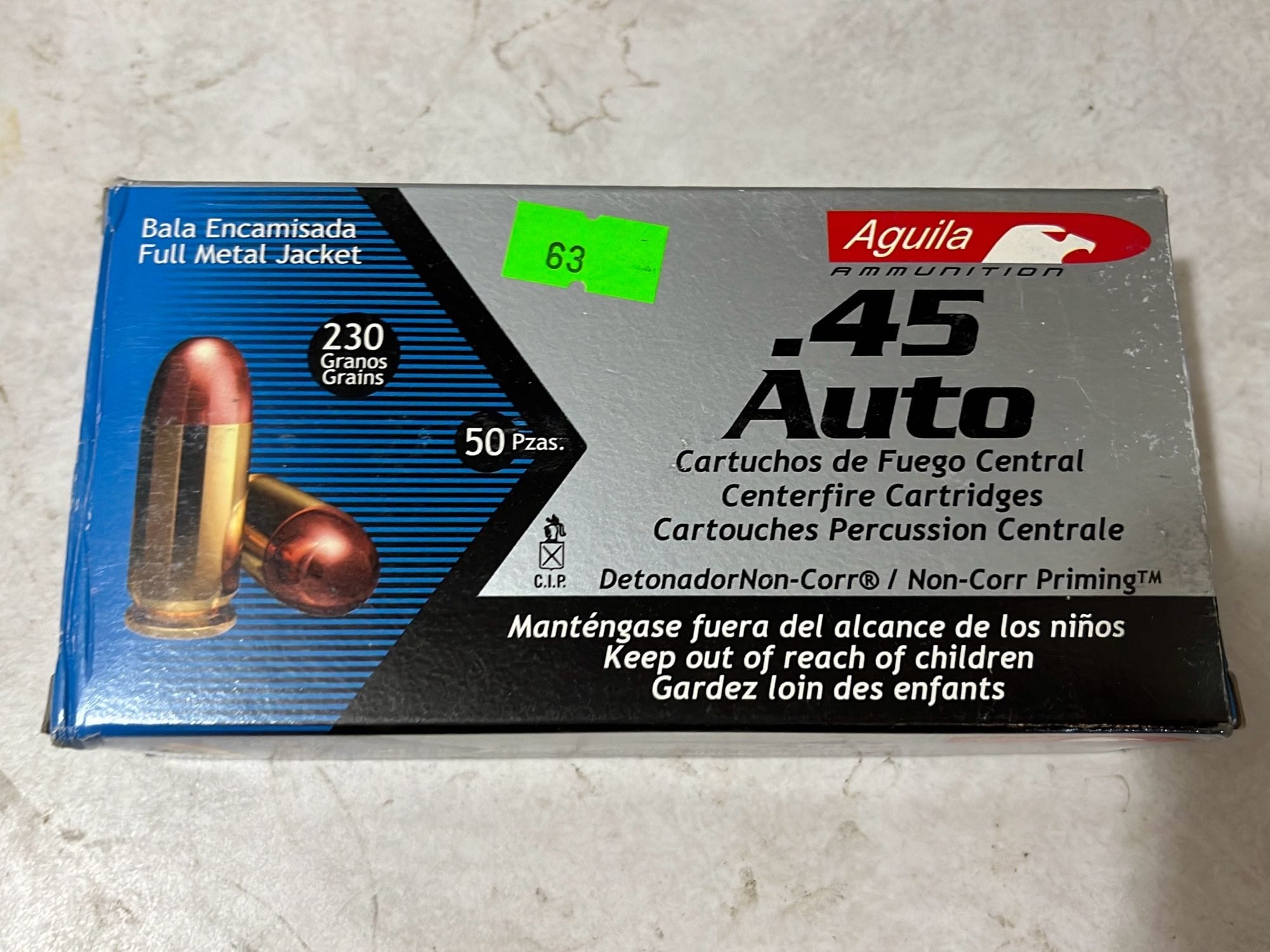961 .45 auto ammo - 7 boxes 50 rounds per box in ammo box