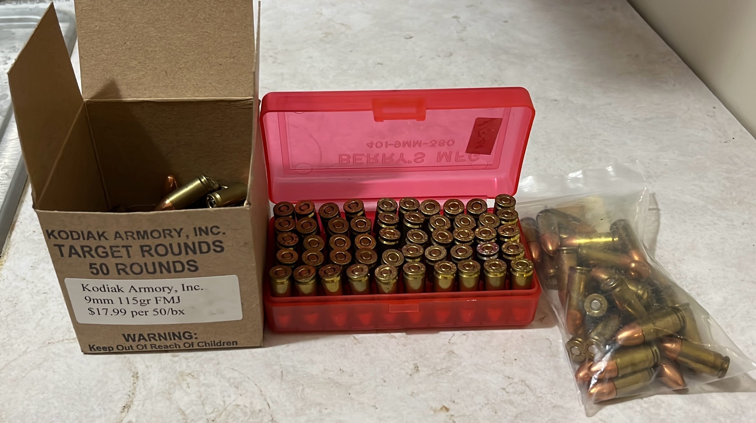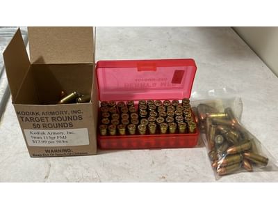 65 9mm FMJ - 50ct, 9mm Luger - 31ct & 9mm reloads - 50ct