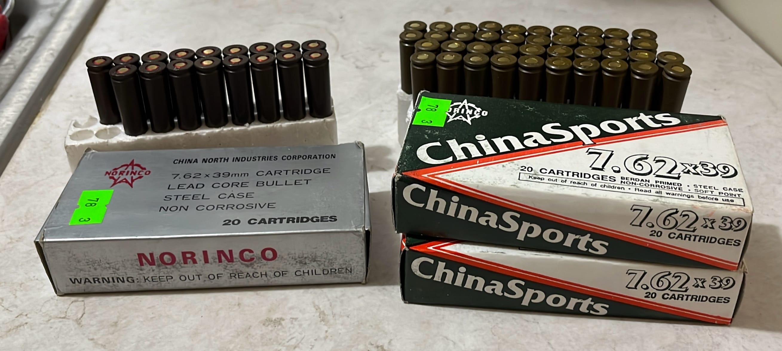 78 Norinco 7.62x39mm lead core - 17ct & Steel case - 40ct cartridges