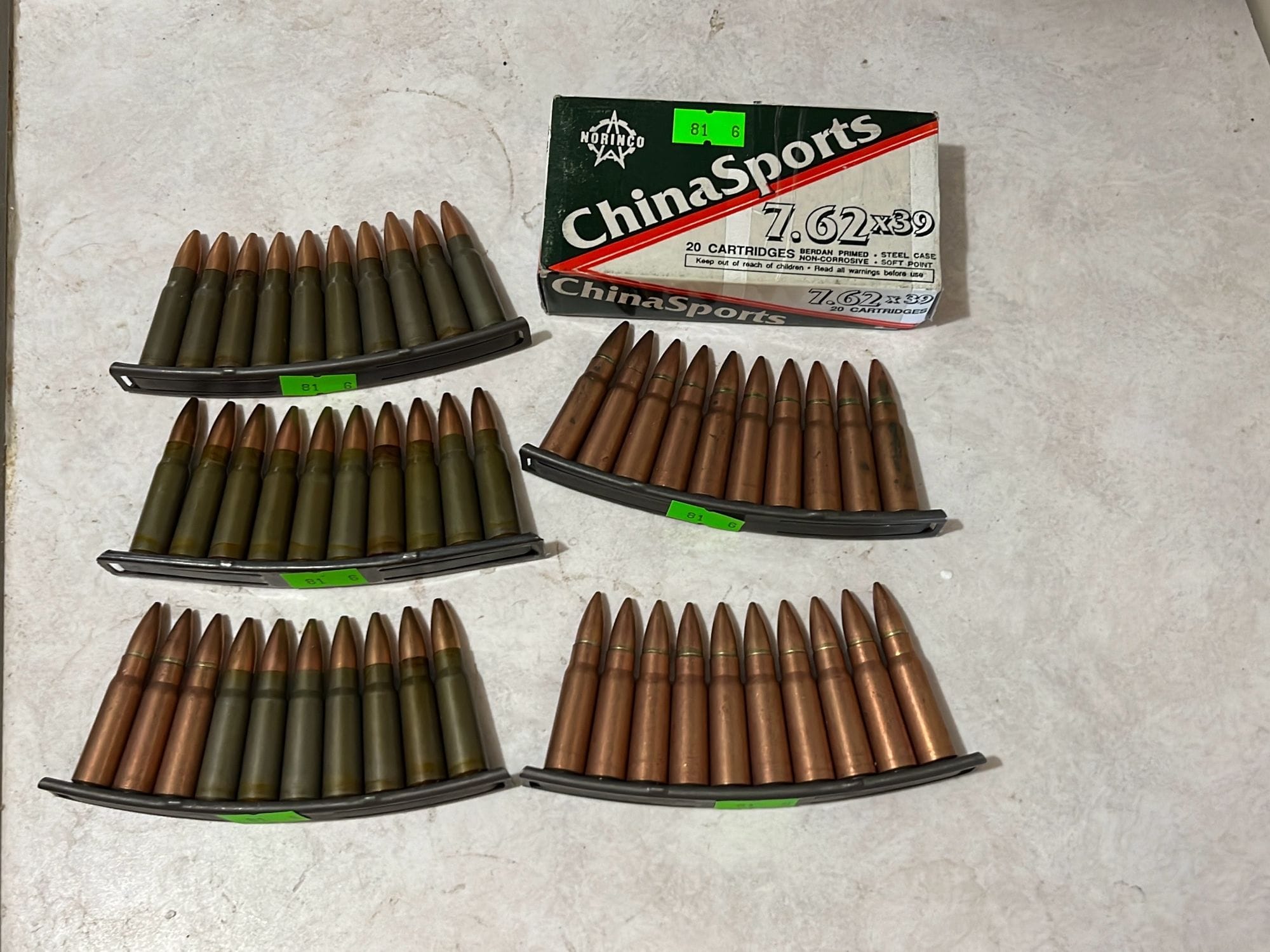 81 7.62 on stripper clips - 50ct, Norinco 7.62x39 steel case - 20ct