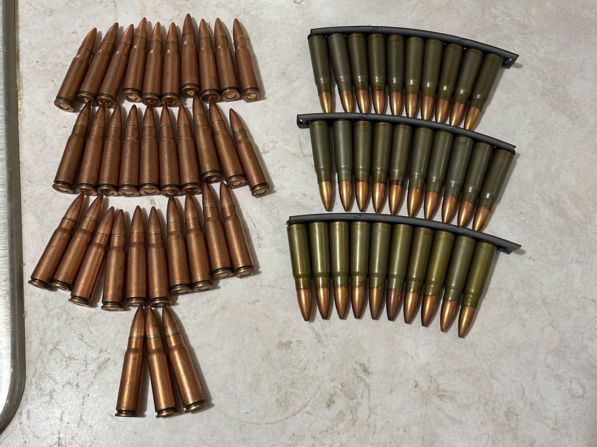 82 7.62 on 3 stripper clips - 30ct and assorted 7.62 cartridges - 33ct