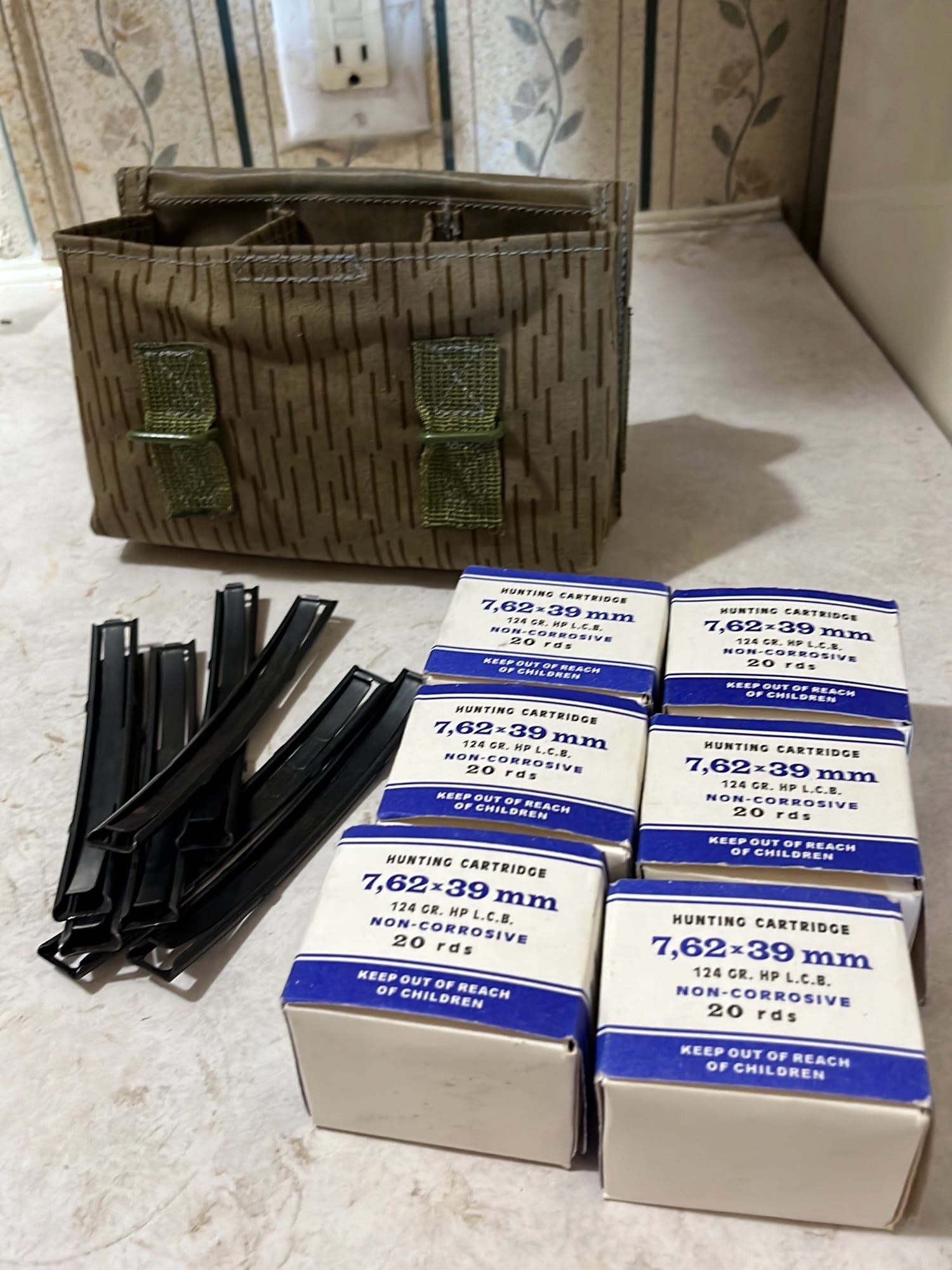 83 Hunting Cartridges 7.62x39mm - 120ct, stripper clips, bag
