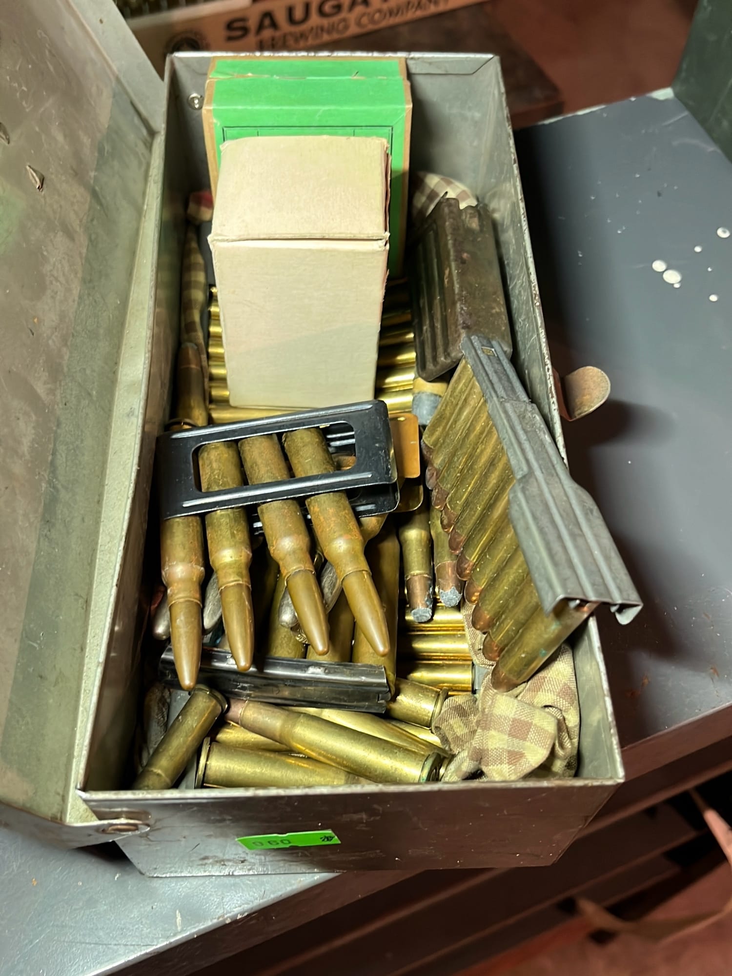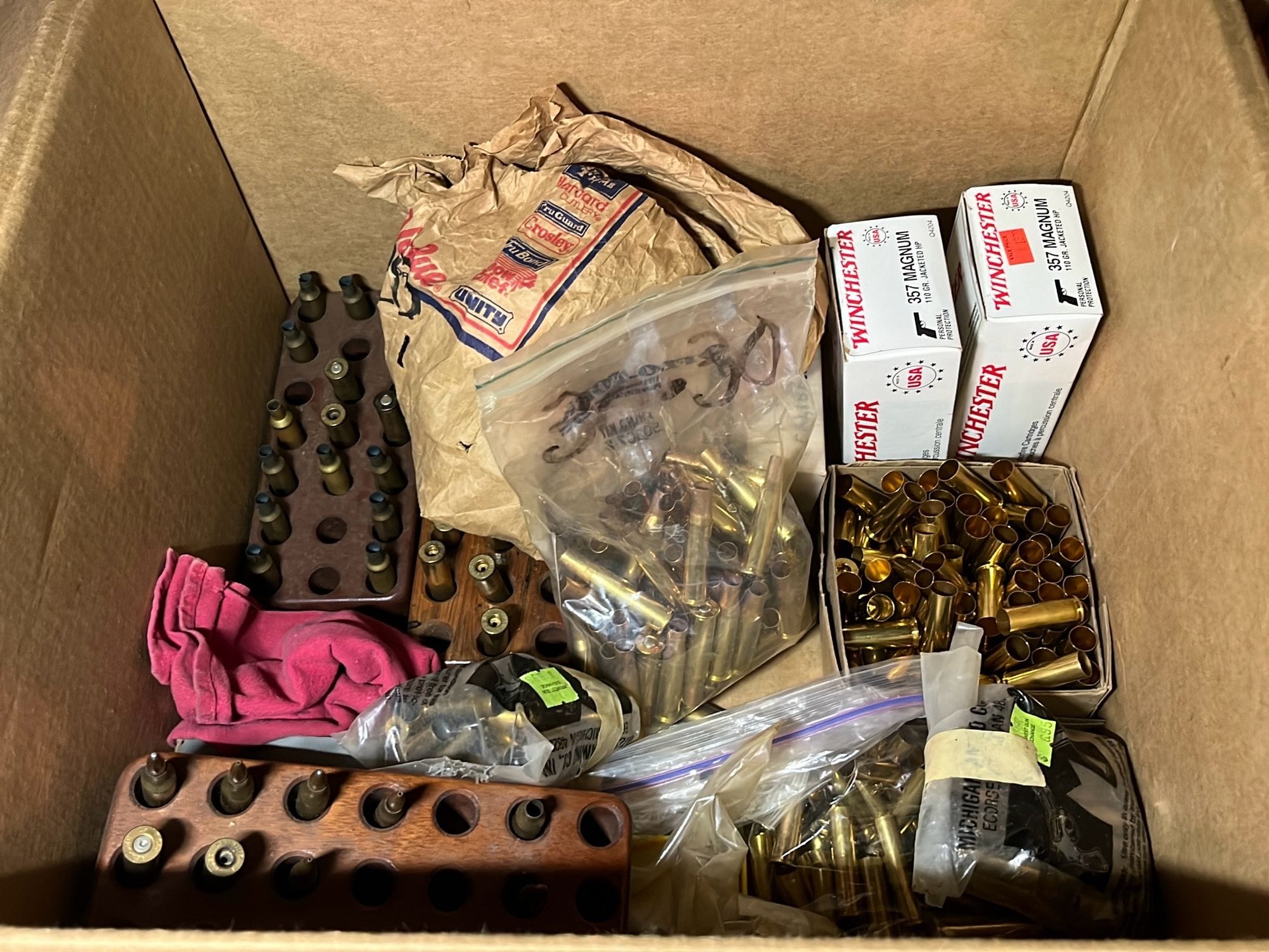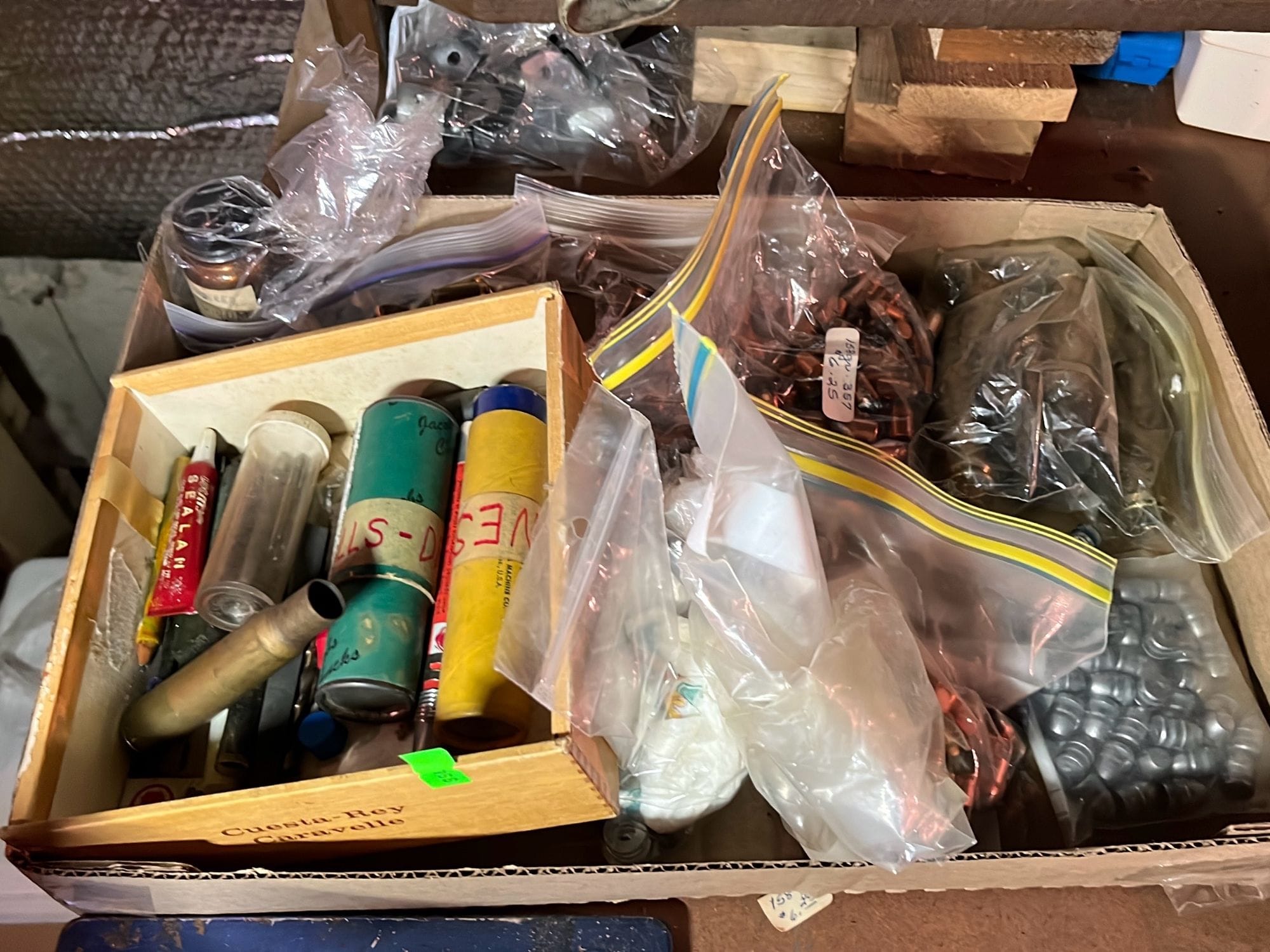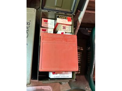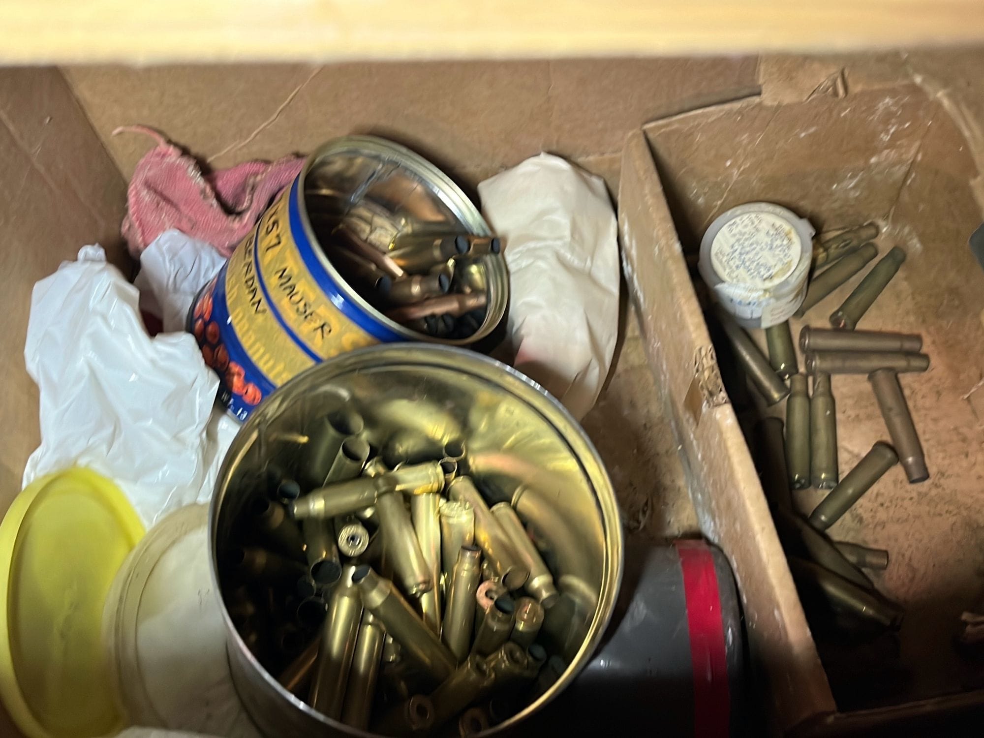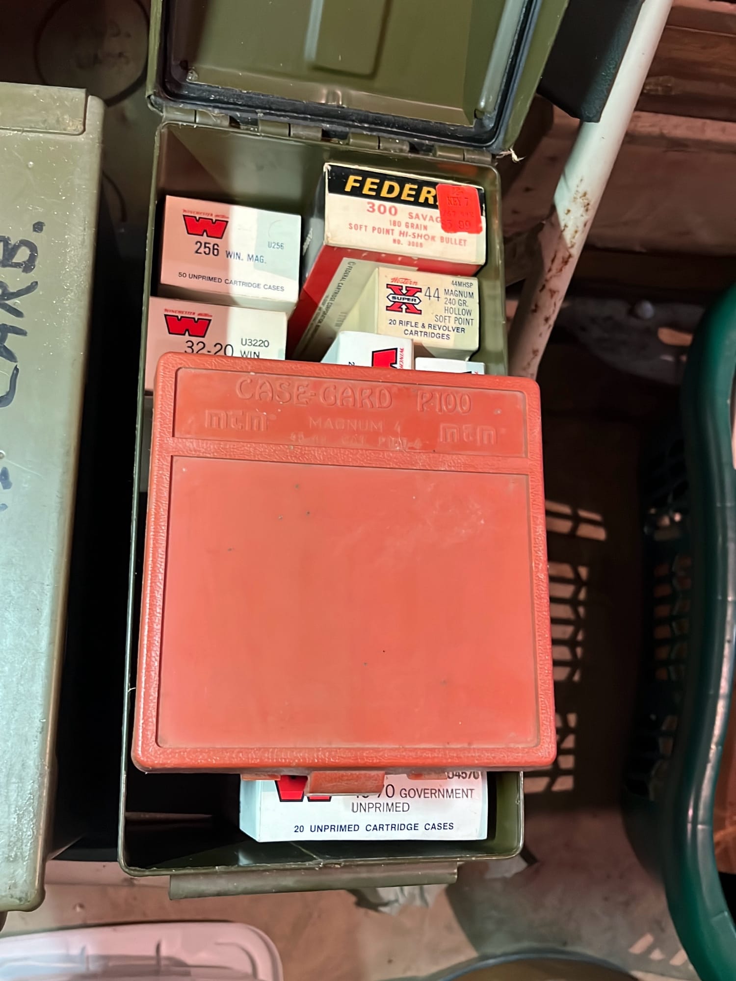 1037 .44 mag, .32-20 Ammo, brass assorted metal ammo box