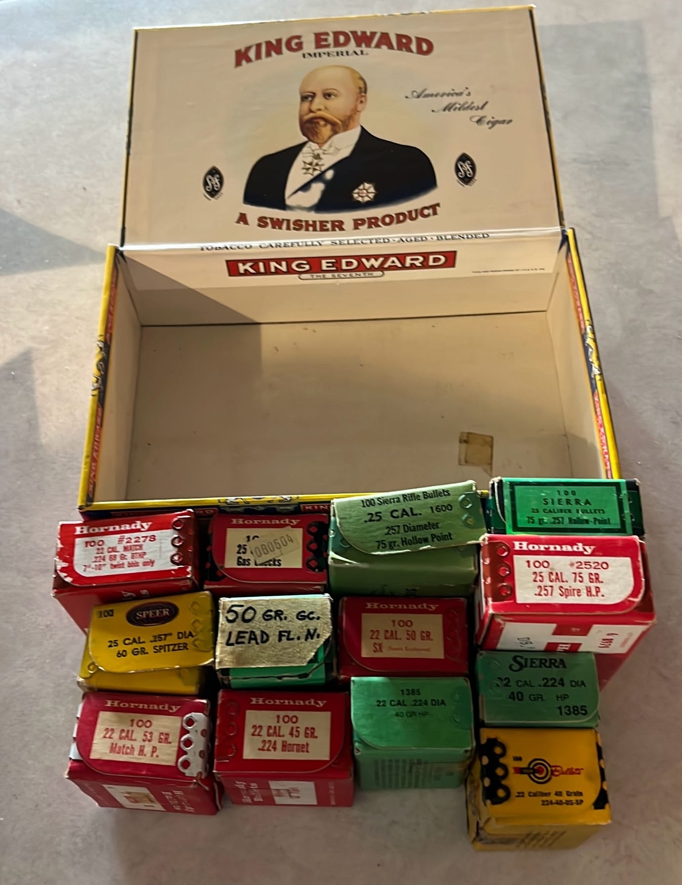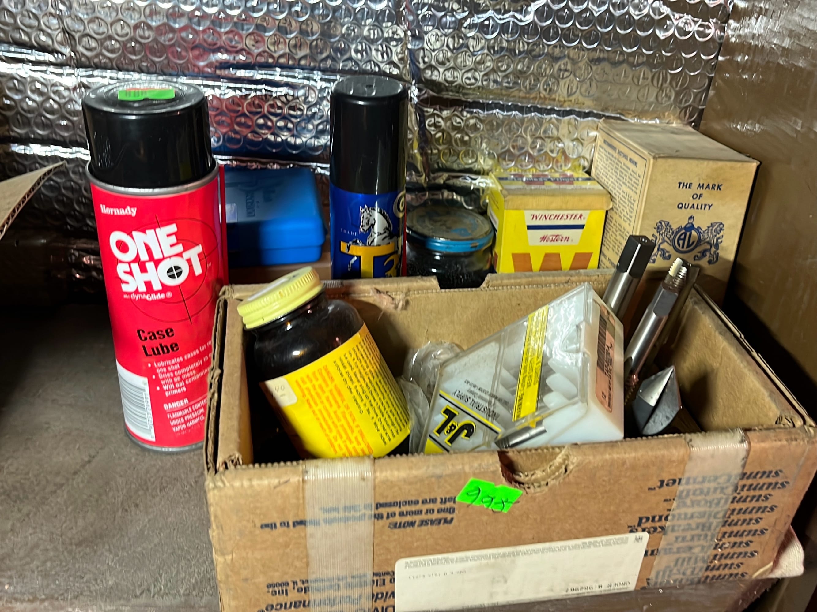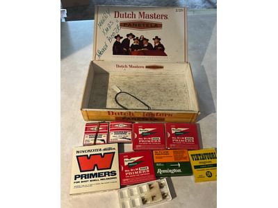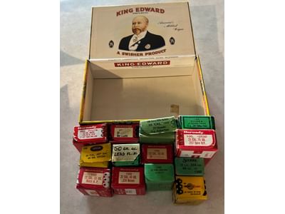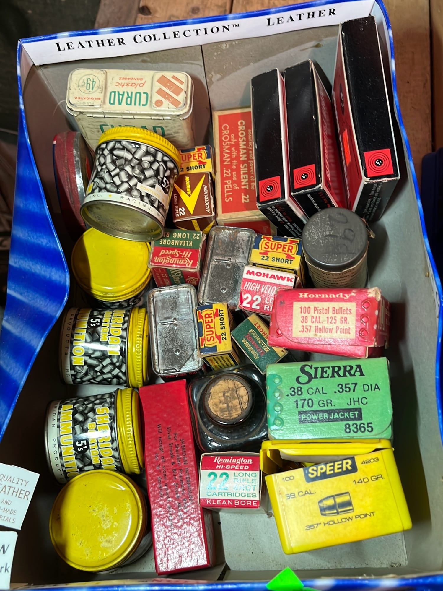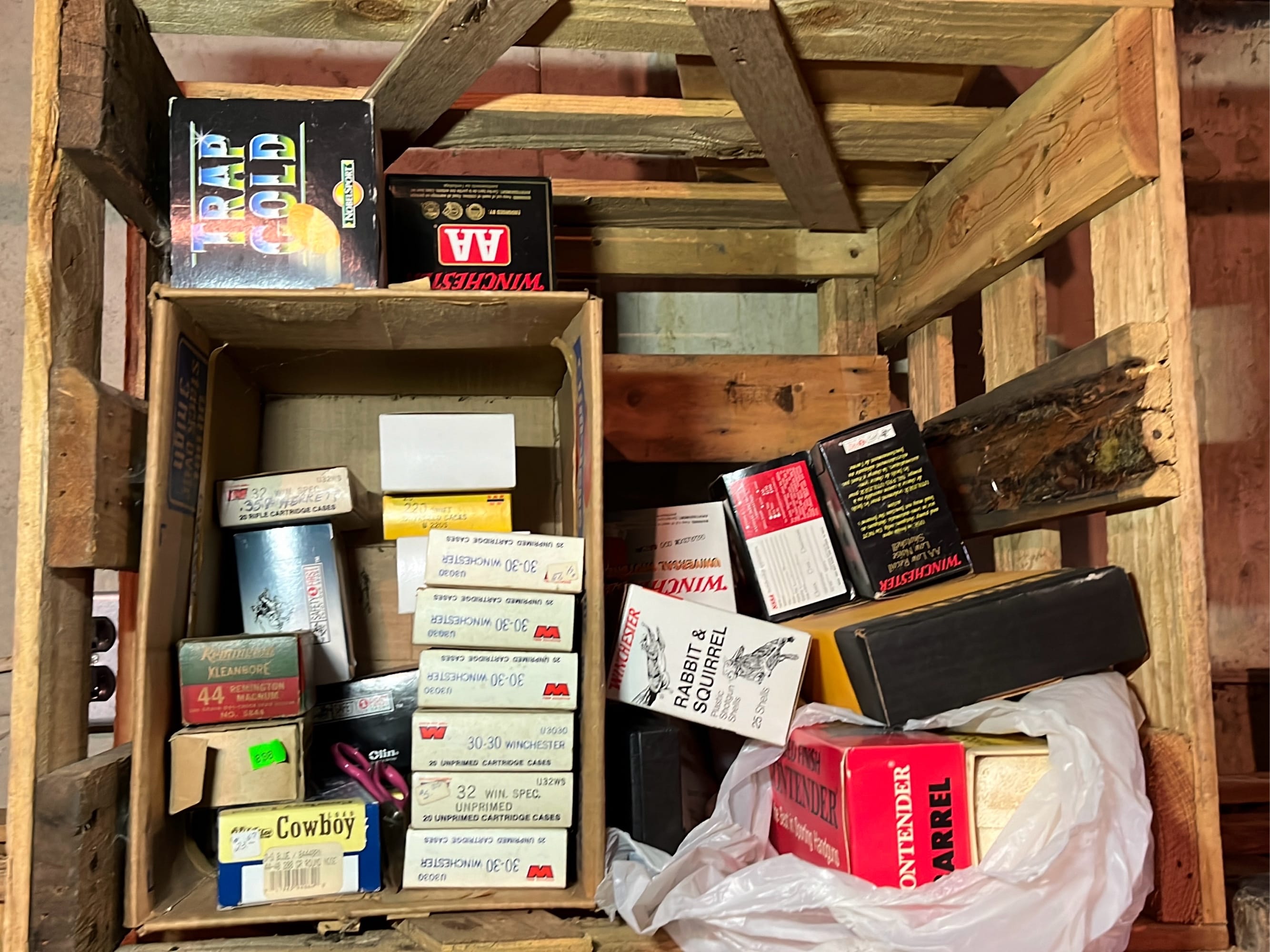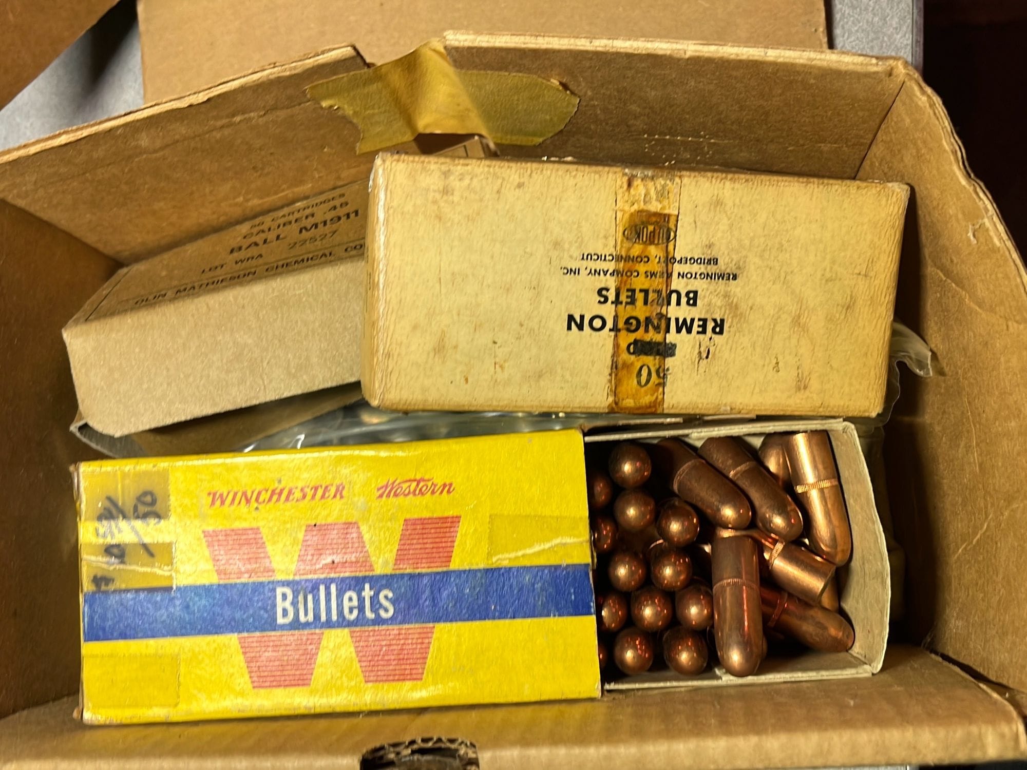 1037 .44 mag, .32-20 Ammo, brass assorted metal ammo box