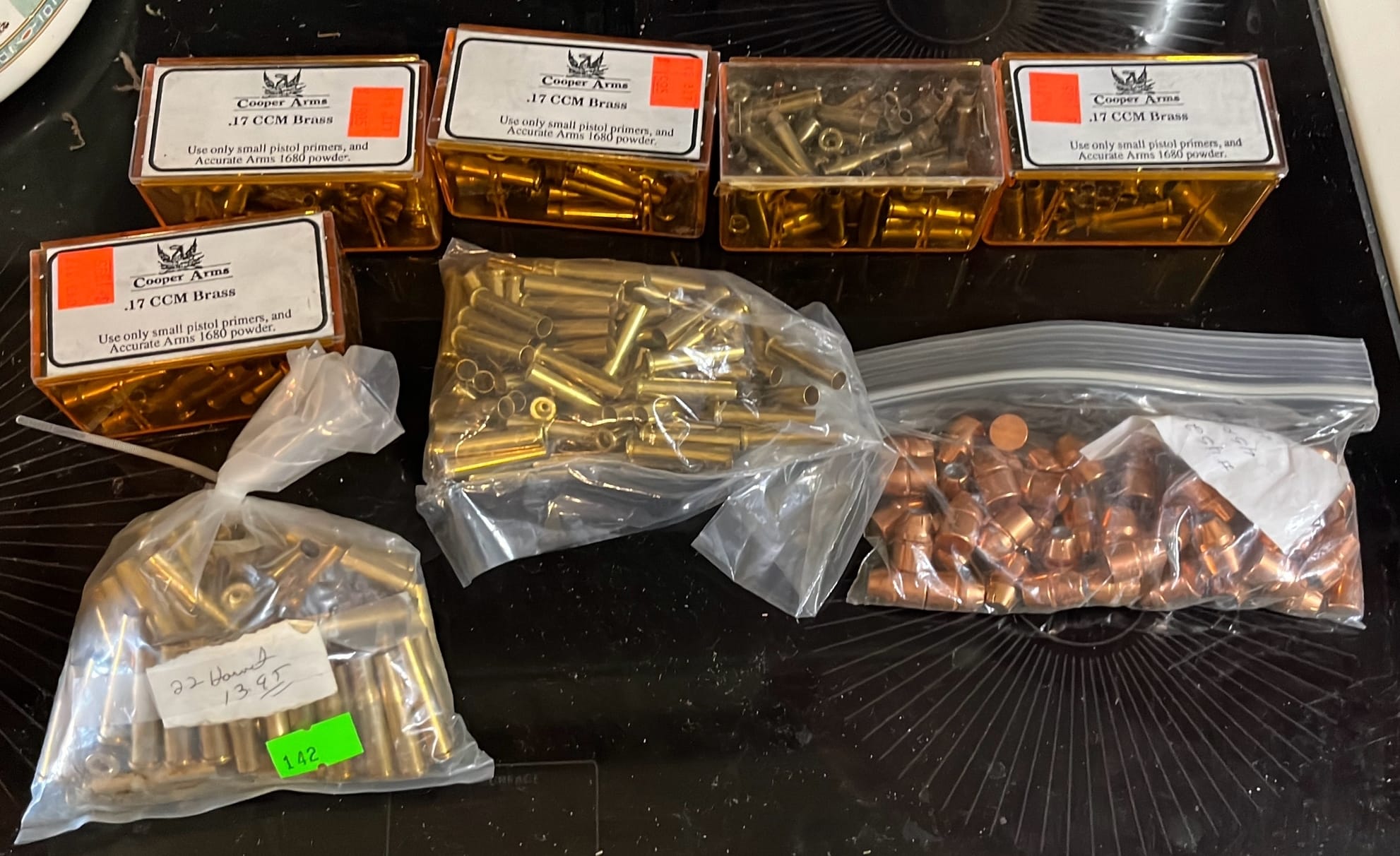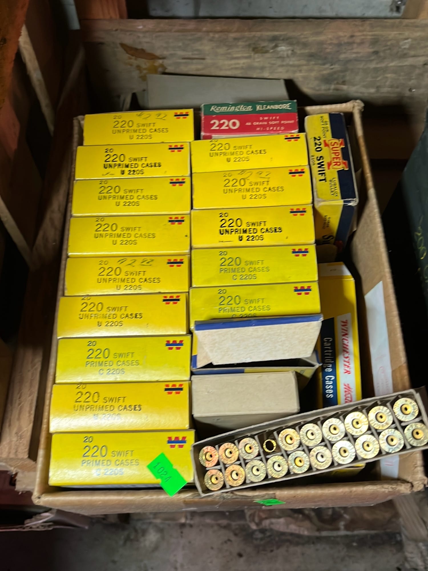 1004 Ammo assortment inc. approx 300 .22cal rounds, approx 200 hornet .22cal casings