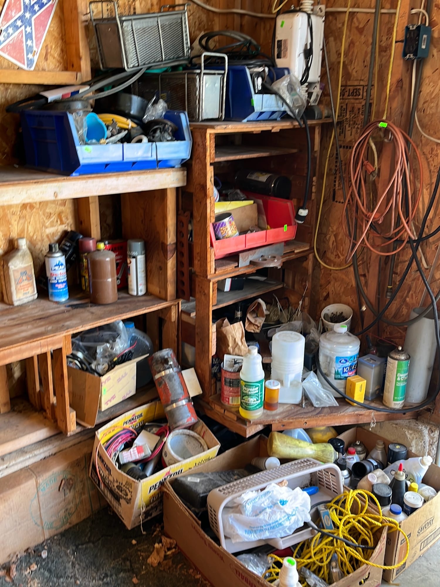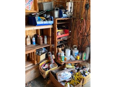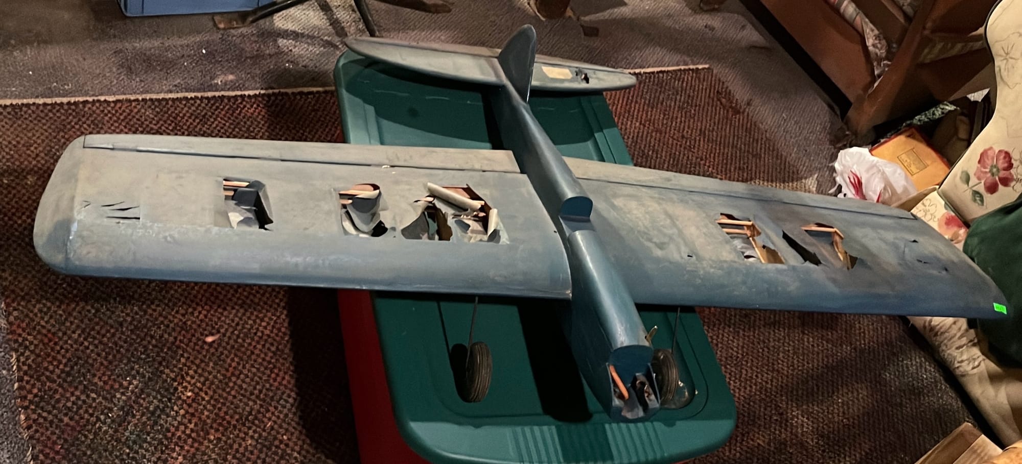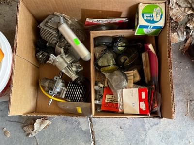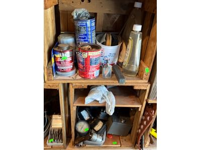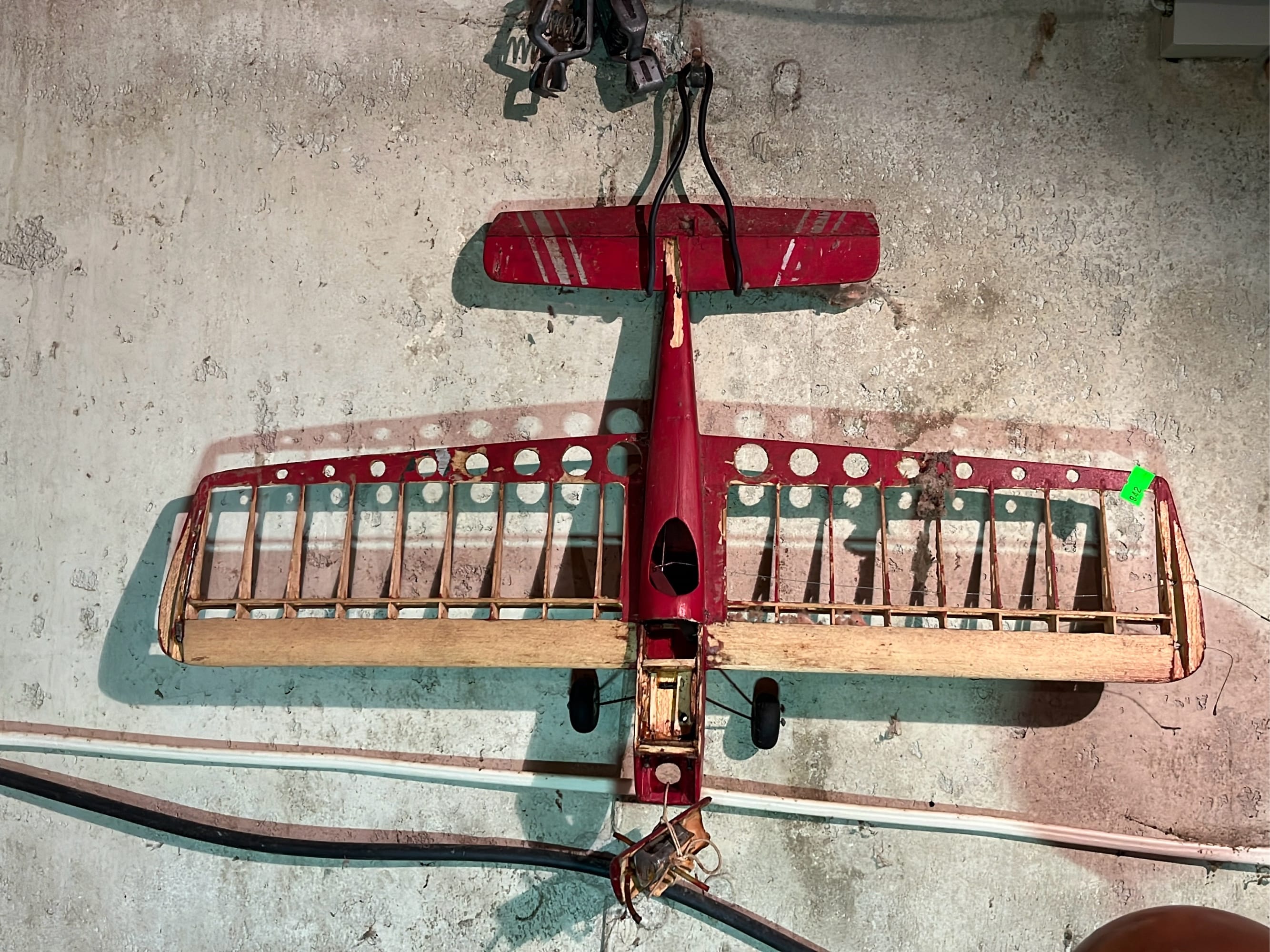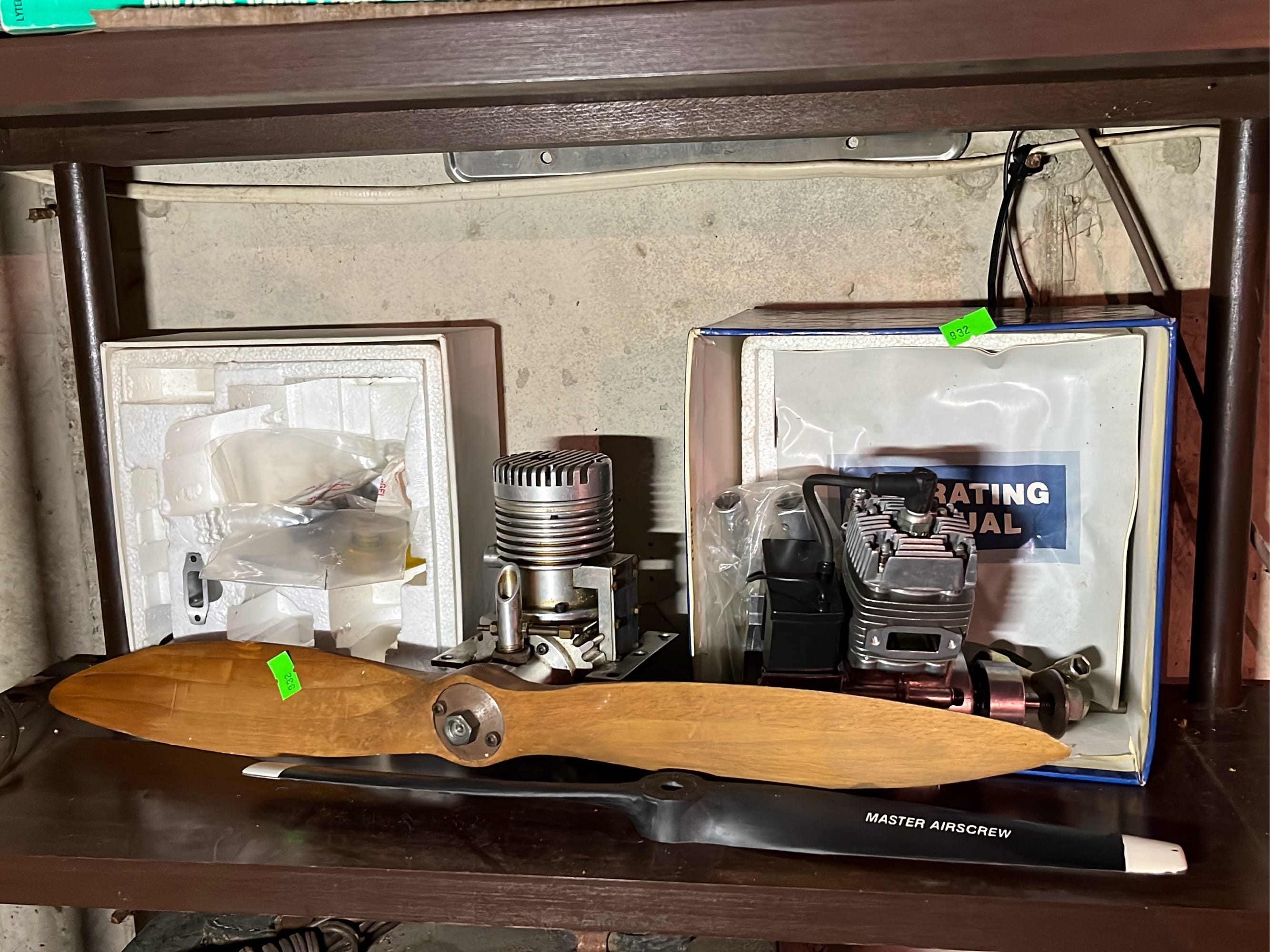 2000 RC airplane, parts, shelving, chemicals, Contents of room as shown in pictures - buyer assumes responsibility for removal as the area deteriorated